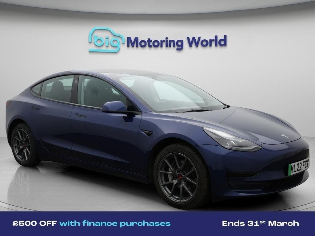 £500 towards your finance depo-Our Tesla Model 3 is finished in Blue. Specification includes a range of fantastic features including £500 towards your finance deposit, Panoramic Roof, 18'' alloy wheels, Leather Seats, Adaptive Cruise Control, Satellite Navigation, Heated Seats, Wireless Phone Charging, Rear View Camera, Heated Steering Wheel Specification information is supplied by CAPHPI and may vary to the actual car. This data does not form any part of a buying contact. Please check specification prior to purchase in-store. The MOT is valid until February 2027, visit bigmotoringworld.co.uk for more photos, a 360 tour, service history and a free HPI report.Were BIG on peace of mind and this Blue Tesla Model 3 has completed our comprehensive 200 point inspection and passed all checks. Its ready for you to drive away with immediate collection in-store. We include a 90-day warranty as standard plus an option to extend for up to 3 years.Reserve this car exclusively for you, safely and securely at bigmotoringworld.co.uk, with a fully refundable £99 deposit. Test drive before you buy, with no commitment, no hassle and a completely haggle free experience. Still searching and want to see thousands more cars? We are BIG on choice with over 8000 cars to choose from.Visit our award winning web site bigmotoringworld.co.uk.Were Big Motoring World and were BIG on what matters to you.