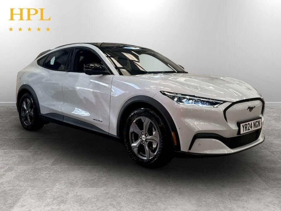 10.2in Full Digital Cluster and 15.5in Central Touch Screen, 18in Alloy Wheels - 5-Spoke - Silver, 6-Way Manual Driver and Passenger Seats, ABS - Anti-lock Braking System, Adaptive Cruise Control with Stop and Go and Lane-Centering, Air Conditioning - Dual Zone Electronic Automatic Temperature Control, Airbags - Driver and Front Passenger, Applink Remote Control System, BLIS - Blind Spot Information System with Cross Traffic Alert, Body Colour Bumpers, Body Colour Heated Mirrors with Puddle Light Mustang Logo Projection, Brace Front Grille Design, E-Latch Keyless Entry System including B-Pillar Keypad Access, Electric Windows - Front, FordPass Connect Embedded Modem, Front and Rear Parking Sensors, Front Trunk, Heated Driver and Passenger Seats, Heated Steering Wheel, High Power Charging Cable, Lane Keeping Aid with Lane Departure Warning, LED Mustang Signature Taillights, LED Reflector Headlamps, Next Generation SYNC with Connected Navigation and Natural Voice Search, One Pedal Drive, Power Steering, Pre-Collision Assist, Privacy Glass, Quickclear Heated Windscreen, Rear View Camera, Selectable Drive Modes - Active-Whisper-Untamed, Side Cladding and Wheel Arches in Black, Space White, Standard Home Charging Cable - 3-Pin Domestic Socket 230V, Tech Pack Plus, Thatcham Category 1 Alarm, Wireless Device Charging Pad