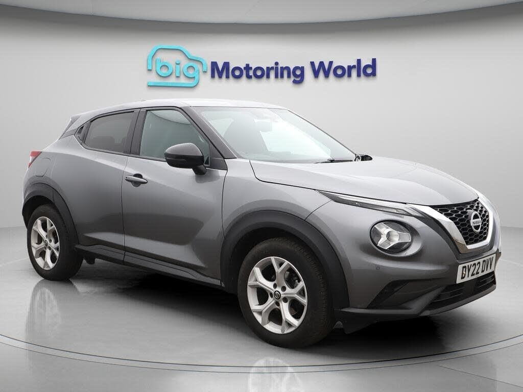 Apple CarPlay,Privacy Glass-Our Nissan Juke is finished in Grey. Specification includes a range of fantastic features including Apple CarPlay, Privacy Glass, Bluetooth, Parking Sensors, Ambient Lighting, Climate Control, DAB Radio , Touch Screen Control, LED daytime running lights, Multi Function Steering Wheel Specification information is supplied by CAPHPI and may vary to the actual car. This data does not form any part of a buying contact. Please check specification prior to purchase in-store. The MOT is valid until January 2027, visit bigmotoringworld.co.uk for more photos, a 360 tour, service history and a free HPI report.Were BIG on peace of mind and this Grey Nissan Juke has completed our comprehensive 200 point inspection and passed all checks. Its ready for you to drive away with immediate collection in-store. We include a 90-day warranty as standard plus an option to extend for up to 3 years.Reserve this car exclusively for you, safely and securely at bigmotoringworld.co.uk, with a fully refundable £99 deposit. Test drive before you buy, with no commitment, no hassle and a completely haggle free experience. Still searching and want to see thousands more cars? We are BIG on choice with over 8000 cars to choose from.Visit our award winning web site bigmotoringworld.co.uk.Were Big Motoring World and were BIG on what matters to you.