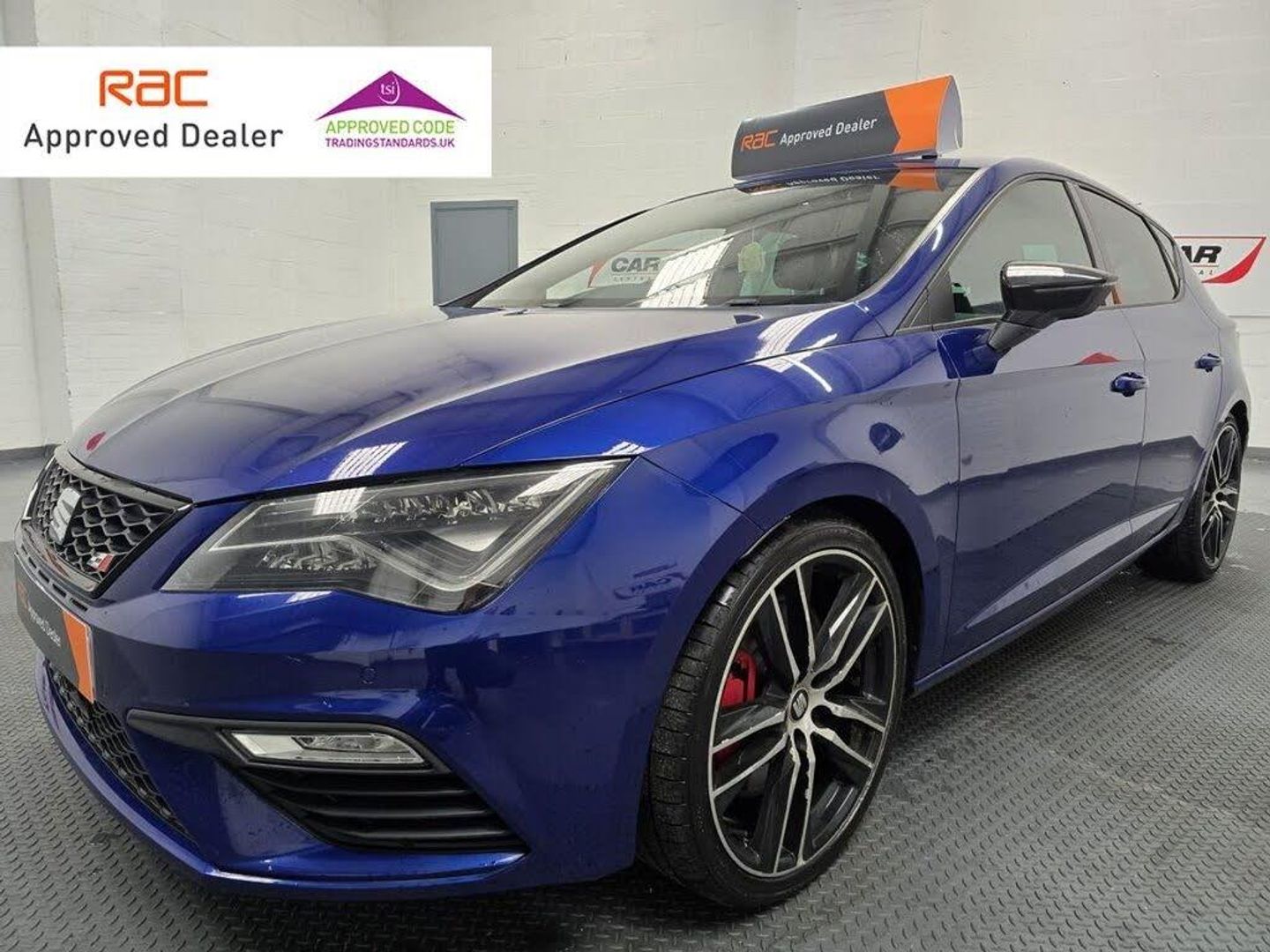 12V Power Supply in Centre Console, 19in Alloy Wheels - CUPRA Machined, 7 Airbags, ABS and Traction Control System - TCS - Electronic Stability Control - ESC - and Electronic Differential Lock System - XDS, Alarm - Volumetric, Armrest - Front with Storage Compartment, Black Interior Roof Lining, Boot Storage Net, Brake Callipers - Black, Bumpers - Exclusive Cupra Front and Rear, Cargo Rings in the Boot, Convenience Pack Plus, Cruise Control, Dark Tinted Rear Windows, Digital Clock, Digital Cockpit, Driver and Passenger Seat Height Adjustment, Driver and Passenger Sunvisor with Covered and Illuminated Mirrors, Drivers Seat Lumbar Adjustment, Dual Zone Climate Control, ESC - Electronic Stability Control and Tyre Pressure Warning Light Indicator, ESC Switch-Off Key, Electric Parking Brake Including Autohold Function, Electrically Adjustable and Heated Door Mirrors, Electrically Foldable Exterior Mirrors with Parking Position and Passenger-Side Mirror with Lowering, Electro-Mechanical Progressive Power Steering, Emergency Tyre Repair Kit, Flat Bottomed-Perforated Leather Steering Wheel with White Stitching and CUPRA Logo, Front Assist with Pedestrian Protection, Front Seat Back Storage Pockets, Front and Rear Electric Windows, Front and Rear Parking Sensors, Full LED Headlights, Gearshift Indicator, Gloss Black Door Mirrors with Integrated LED Indicators, Hill Hold Control, ISOFIX Points in Outer Rear Seats with Top Tether Anchorage Points, Illuminated Aluminium Front Door Sill with CUPRA Logo, Instrument Lighting with Brightness Control, Interior CUPRA - Black, Interior Detailing - Black, LED Interior Illumination Pack, Lights Left On Warning Buzzer, Low Fuel Warning Light, Lower Suspension - 15mm, Mechanical Limited Slip Differential, Media System Plus, Multi Coloured Ambient Lighting, Multi-Collision Braking System, Navigation System, Outside Temperature Gauge, Pedals in Aluminium, RPM Counter, Radiator Grille Frame in Glossy Black, Radiator Grille in Black, Remote Central Locking with Deadlocks, SEAT Drive Profile, SEAT Full Link Smartphone Integration - Mirror Link - Apple CarPlay - Google Android Auto, Seatbelt Reminder - Front, Seats - Passenger Lumbar Adjustment, Space-Saving Spare Wheel, Split Folding Rear Seats 60-40 with Armrest, Steering Wheel-Mounted Gearshift Paddles, Storage Box Under Driver and Front Passenger Seat, Trip Computer, Two Folding Keys with Window Open-Close - Door and Boot Opening Functionality, Two Height-Adjustable Front and Rear Headrests, USB Cable for Apple and Android Compatibility, Visual Dual Exhaust Pipes