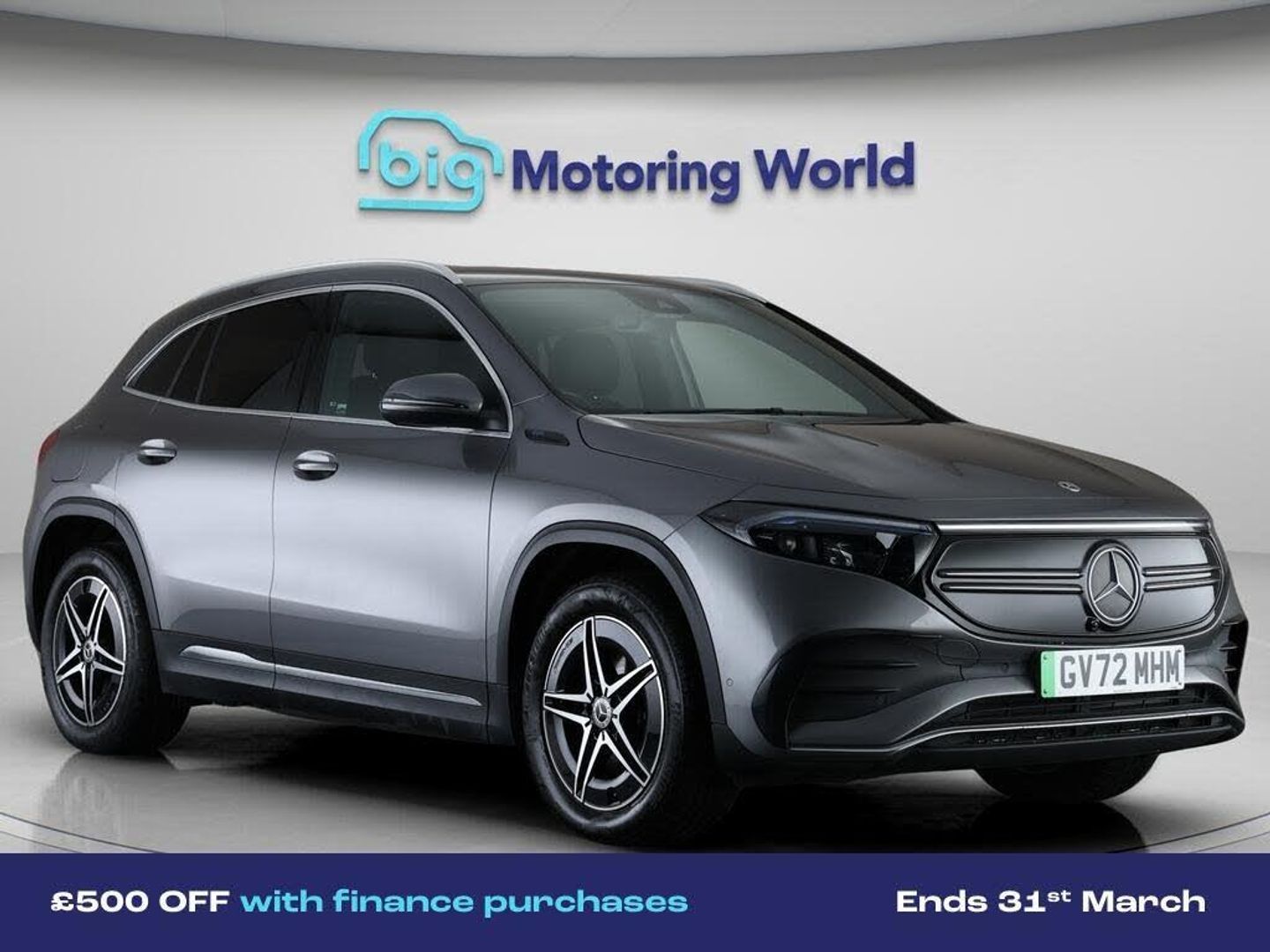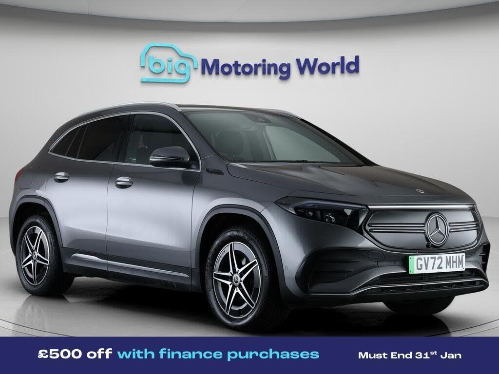 £500 towards your finance depo-Our Mercedes-Benz EQA is finished in Grey. Specification includes a range of fantastic features including £500 towards your finance deposit, Comfort Pack, 18'' alloy wheels, Part Leather Seats, Air Suspension, Apple CarPlay, AMG body styling, Parking Pack, Satellite Navigation, Privacy Glass Specification information is supplied by CAPHPI and may vary to the actual car. This data does not form any part of a buying contact. Please check specification prior to purchase in-store. The MOT is valid until February 2027, visit bigmotoringworld.co.uk for more photos, a 360 tour, service history and a free HPI report.Were BIG on peace of mind and this Grey Mercedes-Benz EQA has completed our comprehensive 200 point inspection and passed all checks. Its ready for you to drive away with immediate collection in-store. We include a 90-day warranty as standard plus an option to extend for up to 3 years.Reserve this car exclusively for you, safely and securely at bigmotoringworld.co.uk, with a fully refundable £99 deposit. Test drive before you buy, with no commitment, no hassle and a completely haggle free experience. Still searching and want to see thousands more cars? We are BIG on choice with over 8000 cars to choose from.Visit our award winning web site bigmotoringworld.co.uk.Were Big Motoring World and were BIG on what matters to you.
