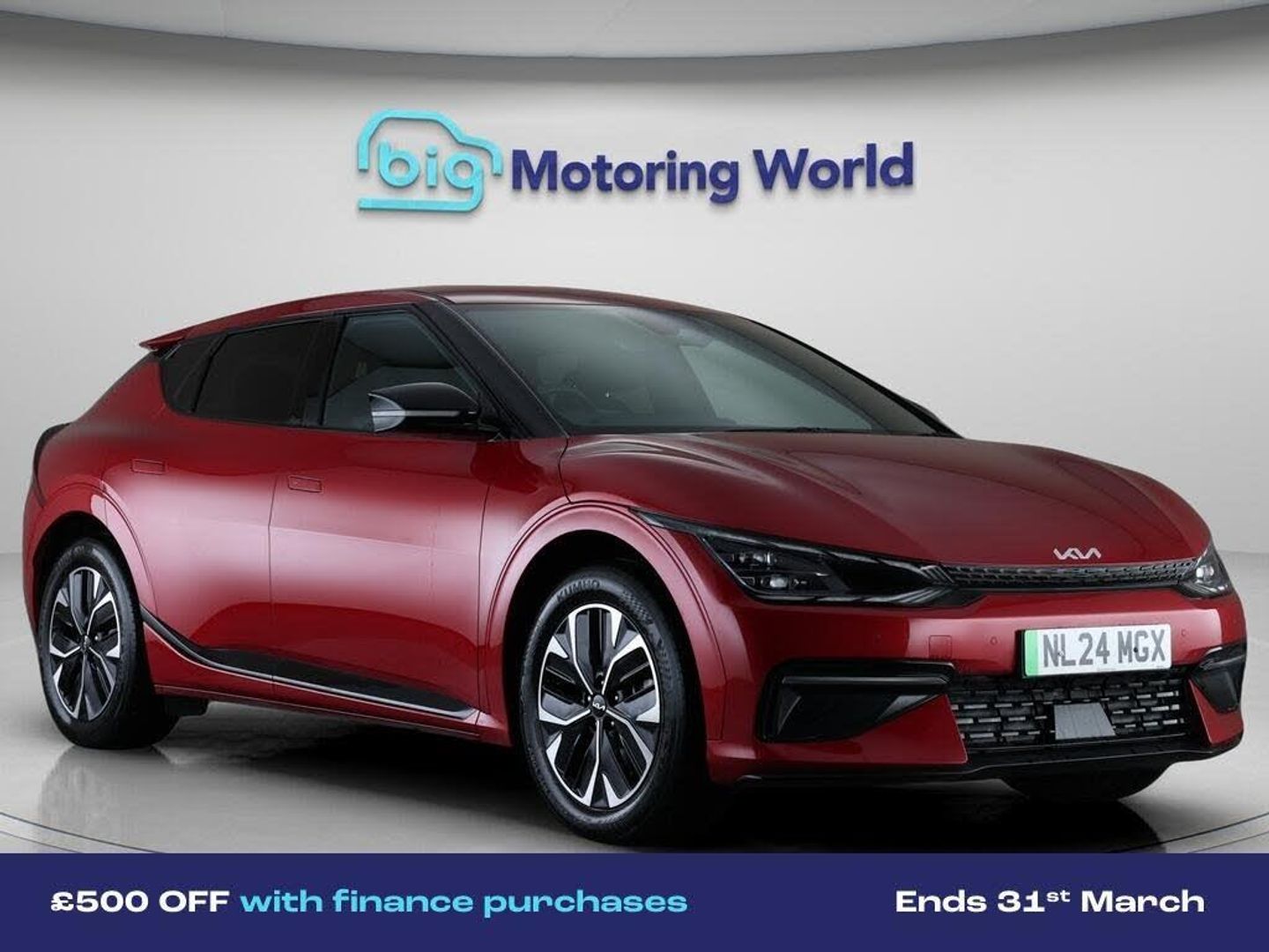 £500 towards your finance depo-Our Kia EV6 is finished in Red. Specification includes a range of fantastic features including £500 towards your finance deposit, All Wheel Drive, 19'' Alloy wheels, Apple CarPlay, Adaptive Cruise Control, Privacy Glass, Heated Seats, Heated Steering Wheel, Internet, Bluetooth Specification information is supplied by CAPHPI and may vary to the actual car. This data does not form any part of a buying contact. Please check specification prior to purchase in-store. The MOT is valid until March 2027, visit bigmotoringworld.co.uk for more photos, a 360 tour, service history and a free HPI report.Were BIG on peace of mind and this Red Kia EV6 has completed our comprehensive 200 point inspection and passed all checks. Its ready for you to drive away with immediate collection in-store. We include a 90-day warranty as standard plus an option to extend for up to 3 years.Reserve this car exclusively for you, safely and securely at bigmotoringworld.co.uk, with a fully refundable £99 deposit. Test drive before you buy, with no commitment, no hassle and a completely haggle free experience. Still searching and want to see thousands more cars? We are BIG on choice with over 8000 cars to choose from.Visit our award winning web site bigmotoringworld.co.uk.Were Big Motoring World and were BIG on what matters to you.