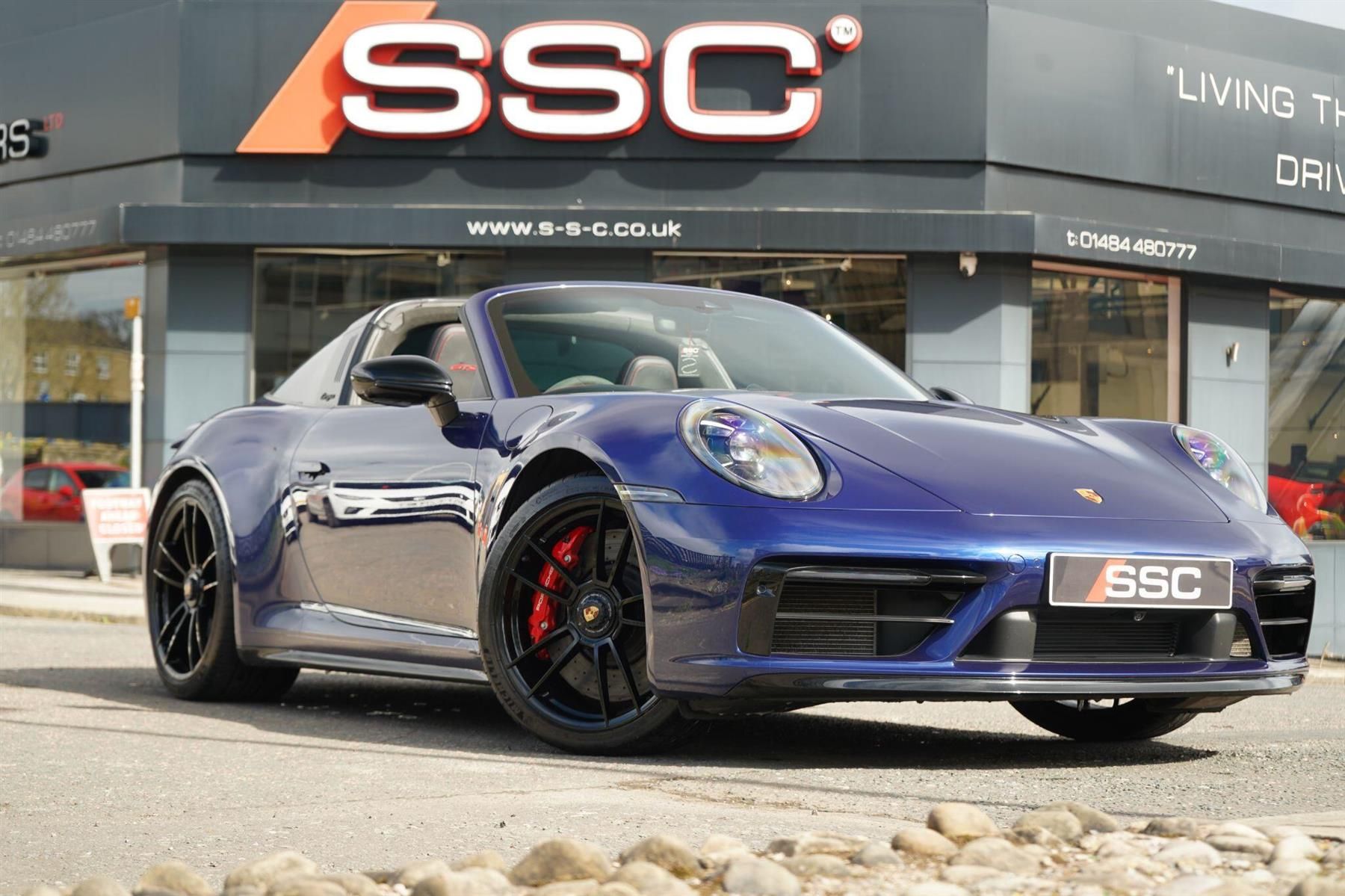 Stunning 992 Targa GTS Finished In Gentian Blue Metallic With GTS Interior Pack. Fantastic Spec Inc: Full Body Paint Protection Film, SportDesign Pack In High Gloss Black, Front Axle Lift System, BOSE Surround Sound, Heated Steering Wheel In Race Tex With Matt Carbon Panel, BOSE Surround Sound, 18 Way Adaptive Sports Seats Plus With Memory, Surround View Cameras, Tinted LED Matrix Headlights, Power Steering Plus, Ioniser, Porsche Entry and Drive, Privacy Glass, Entry and Drive, Carmine Red Rev Counter, Power Folding Mirrors, Light Design Pack, Storage Compartment Lid In Race Tex With Porsche Crest, Storage Pack, Porsche LED Door Courtesy Lights, Sun Visors In Race Tex, Windscreen With Grey Top Tint, Exclusive Design Fuel Filler Cap, Exclusive Design Taillights, Illiminated Door Sill Guards In Matt Carbon. This GTS Comes With Full Service History. Extended Porsche Warranty Until 2027