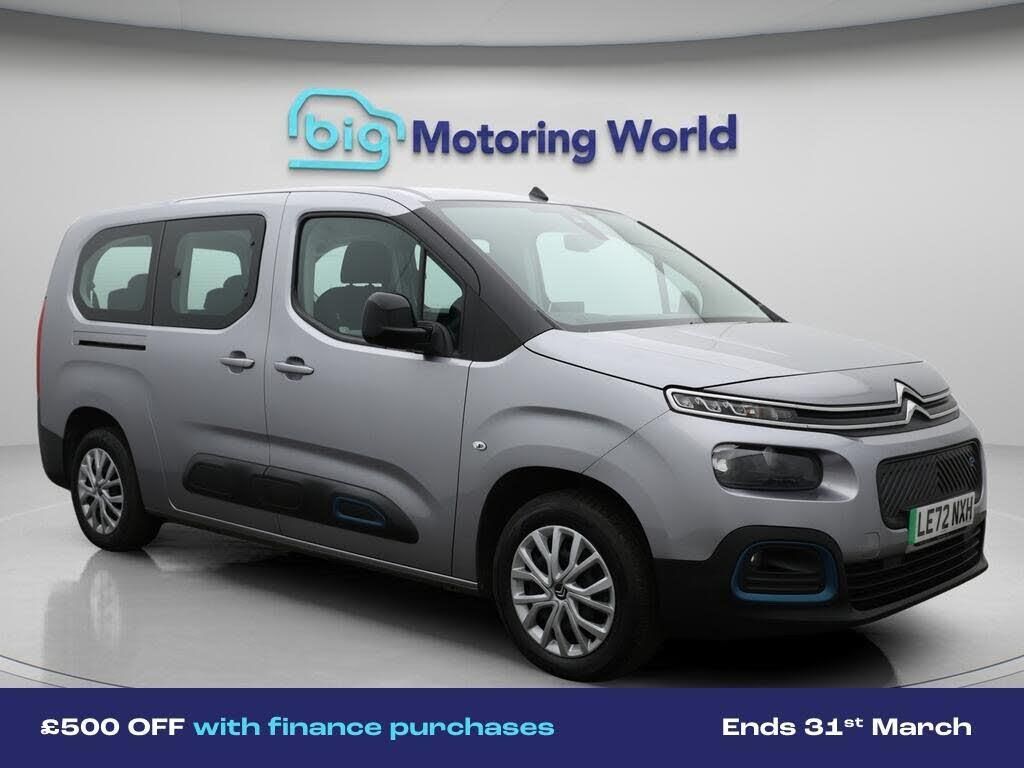 £500 towards your finance depo-Our Citroen e-Berlingo comes with optional extras worth £725. Specification includes a range of fantastic features including £500 towards your finance deposit, Third Row Seats, Apple CarPlay, Android Auto, Rear View Camera, Bluetooth, Parking Sensors, Cruise Control, Climate Control, Voice Control Specification information is supplied by CAPHPI and may vary to the actual car. This data does not form any part of a buying contact. Please check specification prior to purchase in-store. The MOT is valid until January 2027, visit bigmotoringworld.co.uk for more photos, a 360 tour, service history and a free HPI report.Were BIG on peace of mind and this Grey Citroen e-Berlingo has completed our comprehensive 200 point inspection and passed all checks. Its ready for you to drive away with immediate collection in-store. We include a 90-day warranty as standard plus an option to extend for up to 3 years.Reserve this car exclusively for you, safely and securely at bigmotoringworld.co.uk, with a fully refundable £99 deposit. Test drive before you buy, with no commitment, no hassle and a completely haggle free experience. Still searching and want to see thousands more cars? We are BIG on choice with over 8000 cars to choose from.Visit our award winning web site bigmotoringworld.co.uk.Were Big Motoring World and were BIG on what matters to you.