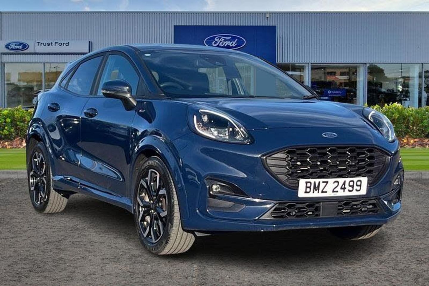 Driver impairment monitor, Emergency call service, Ford easy fuel, Full digital 12.3 instrument cluster, Lane keeping aid with lane departure warning, Power assist steering, Power start button, Rear parking sensor, Selectable drive modes(Normal, Eco, Sport, Slippery and Trail), Speed sign recognition, Automatic headlights with auto high beam, Automatic rain sensing wipers, Front fog lamps, LED daytime running lights, LED rear lamps, Power foldable heated door mirrors with puddle lamps, Privacy glass to side rear windows and tailgate glass, Quickclear heated windscreen, Rear side wing doors, Rear wiper, ST-Line body styling kit with unique grille, Third brake light, 3 seat bench in 2nd row, Centre console with armrest and stowage, Ford megabox extended bootspace, Front and rear head restraints, Front floor mats, Manual 4 way driver seat adjust with lumbar adjustment, Manual 4 way passenger seat with lumbar seat adjustment, Sensico partial premium upholstery, Single front passenger seat, ST-Line flat bottomed sensico leather steering wheel with leather handbrake and aluminium gear knob, Wireless charging pad with electronic air temperature control (EATC), 3 rear seatbelts, Child safety lock, Electronic stability control (ESC) and hill start assist, Pedestrian/cyclist detection & post-collision braking, Pre collision assist system, Tyre pressure monitoring system (TPMS)