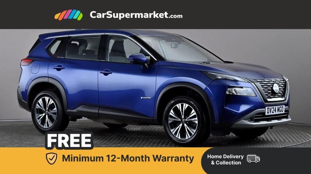 7" High definition full colour TFT screen combimeter,Android auto/Apple CarPlay (Wired),Blind spot warning,Drive modes (sport, normal, eco),e-Pedal step,Electric speed sensitive power steering,Emergency and breakdown call,Front and rear parking sensors,Idle stop/start system,Intelligent Cruise control (ICC),Intelligent driver alert system,Intelligent forward collision warning,Intelligent lane departure warning,Intelligent lane intervention,Intelligent lane keep assist,Maximum speed limiter,Moving object detection,Nissan connect 8" touchscreen infotainment system,Push button starter,Rear cross traffic alert,Rear view camera,Traffic sign recognition with legal speed adjustment,Trip computer,6 speakers,AM/FM audio system with DAB,Bluetooth audio streaming,Front USB connections (Type-A and Type-C),3rd brake light,Auto dimming rear view mirror,Auto rear wiper when reversing,Body colour mirror caps,Body coloured door handles,Bodyside mouldings,Chrome side window finisher,e-POWER badging,Electric auto folding door mirrors,Electrically adjustable and heated door mirrors,Follow me home headlights,High beam assist,Intelligent auto headlights,LED daytime running lights,LED Headlights,LED rear lights,One touch front and rear electric windows with remote opening and closing,Partially body coloured bumpers,Rain sensing wipers,Rear reversing light (bulb lighting),Rear roof spoiler,Rear side wing doors,Rear styling plate,Shark fin antenna,Splash free wipers,Three blink turn signal,12v power socket in dashboard and luggage,3 bench rear seats in 2nd row,3 rear headrests,60/40 split folding rear seat bench,Butteryfly console,Chrome interior door handles,Cloth monoform upholstery,Driver and front passenger sunvisors with illuminated vanity mirrors,Driver seat back pocket,Dual zone automatic climate control with pollen filter,Front centre console and armrest,Front cupholders,Front door with bottle holders,Height adjustable driver's seat,Height adjustable front headrests,Height adjustable passenger seat,Leather shift knob,Leather steering wheel,Luggage space lighting,Multifunction steering wheel,Passenger seat back pocket,Rear armrest with 2 cupholders,Rear door bottle holders,Single front passenger seat,Tilt/telescopic adjustable steering wheel,Two rear isofix child seat anchorage points with top tether,3x3 point rear seatbelt pretensioners + load limiters,ABS with EBD and brake assist,Active brake limited slip,Auto hold function,Child locks on rear doors,Curtain and front side, far side airbags,Driver and passenger airbags,Driver, passenger and 2nd row rear seat belt reminder,Electronic parking brake,Front seatbelt pretensioners + load limiters,Height adjustable front seatbelts,Hill start assist,Intelligent blind spot intervention,Intelligent front emergency braking with pedestrian, cyclist recognition and junction assist,Intelligent rear automatic braking,Tyre pressure monitoring system,Vehicle dynamic control,Engine immobiliser,Intelligent Key,Remote central door locking with deadlocking,Thatcham Cat.1 alarm,18" Diamond cut alloy wheels,Tyre puncture repair kit