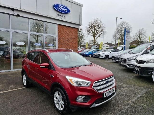 Ebony Cloth Interior interior.This 2017 Ford Kuga TDCi Titanium offers an impressive 54 miles per gallon, making it a highly economical choice for your motoring needs. This Four Wheel Drive model is equipped with a robust 2.0 litre diesel engine and meets Euro 6 emission standards, reflecting its modern and efficient design. The Titanium trim level ensures a well appointed interior and a comfortable driving experience. The Ford Kuga TDCi Titanium stands out with its low CO2 emissions, indicating a more environmentally conscious performance compared to many other vehicles in its class. This combination of fuel efficiency, capable Four Wheel Drive, and a focus on reduced emissions makes this 2017 Kuga a sensible and appealing option.