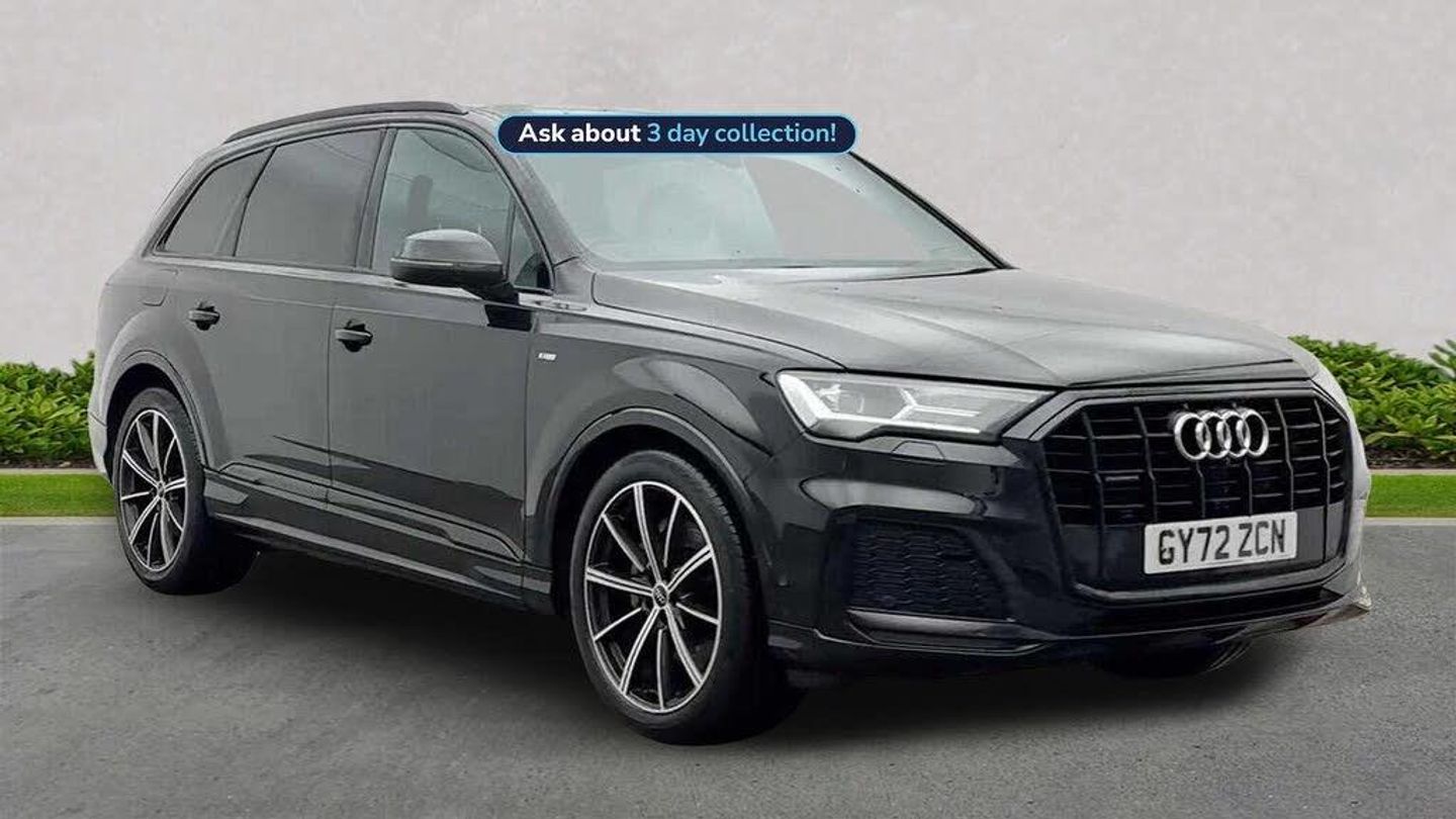 GY72ZCN. Glasgow Audi are offering a rare opportunity to own this AUDI Q7 Black Edition 50 TDI quattro 286 PS tiptronic. This 1 owner vehicle has full service history, has been prepared for sale by our fully trained, experienced and skilled technicians passing our exacting pre sale checks and is ready to go. ===================================================================== A full-size luxury SUV with seven seats, the Q7 is ideal for families needing space without sacrificing comfort or performance. It offers strong towing capacity, advanced safety, and refined interior finishes.Standard features on this car include Integrated SATELLITE NAVIGATION with real-time routing and traffic updates. SATELLITE NAVIGATION via APPLE CAR PLAY which allows integration using apps like Maps to help manage your journeys. FULL LEATHER delivering a luxury feel in the cabin. CLIMATE CONTROL which automatically regulates cabin temperature for you. VIRTUAL COCKPIT so that you can customise the digital dashboard with maps, gauges, and media. CRUISE CONTROL to maintain a steady speed without constant pedal input. FRONT AND REAR PARKING SENSORS to help manoeuvring in tight spaces whether you are going forward or reversing. REAR CAMERA for easier and safer reversing. HEATED FRONT SEATS to keep your comfortable in cold weather conditions. Plus lots more. ===================================================================== 150 MULTI POINT CHECK | AUDI PARTS |FACTORY TRAINED TECHNICIANS 12 MONTH MANUFACTURER BACKED WARRANTY & ROADSIDE ASSISTANCE. AUDI CONNECTED|HISTORY CHECKS ===================================================================== Lookers are an authorised representative for a wide range of award-winning car manufacturers, providing you with an unparalleled choice of quality and approved used cars, currently for sale. Our exceptional standards ensure you receive the best possible service when you purchase with us, ensuring peace of mind when you drive away with your new vehicle. With us representing so many great brands we are an excellent position to offer you a fair and transparent price for your part exchange. At Lookers, we care about our customers and want to ensure that the price you see is the price you pay. Our Transparent pricing policy simply means, honest, straightforward pricing offering our vehicles at the best price possible; ensuring no haggling or hassle for you.