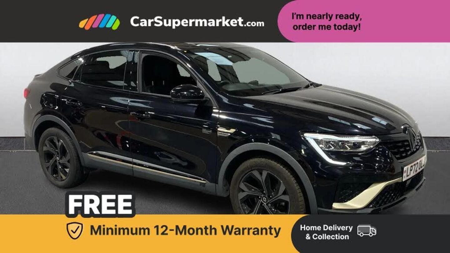 10" TFT Driver information display,Adaptive cruise control and speed limiter,Blind spot warning,Bluetooth system,EASY LINK 9.3" portrait touchscreen with navigation, Google search and traffic information,Eco mode,EV button to activate pure mode,Front and rear parking sensors,Gear change indicator,Lane departure warning,Lane keep assist,Multi-sense - 3 driving modes and 8 ambient lighting,Rear cross traffic alert,Rear view camera,Renault automatic emergency assist,Smartphone integration compatible with Apple CarPlay and Android Auto,Traffic sign recognition with over speed prevention,Trip computer,Variable assistance electric power steering,Wireless phone charger,Arkamys classic sound system with 6 speakers,DAB radio,USB port,3rd brake light,Auto dimming rear view mirror,Automatic full LED headlights,Automatic headlights,Automatic high / low beam,Automatic windscreen wipers with rain sensor,Black door mirrors,Black side door protection with gun metal insert,Body colour rear boot spoiler,Body coloured bumpers,C-shaped LED front signature lighting (333 high),Double chromed exhaust tailpipes elements,E-TECH Engineered front and rear skid plates,E-TECH Engineered front bumper with warm titanium blade,Exterior chrome enhancement,Extra tinted rear windows and tailgate,Frameless rear view mirror,Front and rear electric windows,Front driver window with one touch facility and anti-pinch function,Front grille with chrome on upper part,Heated rear window,Rear windscreen wiper,Shiny black shark fin antenna,3 seat bench in 2nd row,60:40 split and fixed base rear seats,Aluminium pedals,Automatic climate control with combined filter, humidity sensor and AQS,Black interior roof lining,Carbon style dashboard,Central console with storage,E-TECH Engineered leather steering wheel,E-TECH Engineered suede-leather upholstery with gold stitching,Front and rear head restraints,Heated front seats,Heated steering wheel,Height and reach adjustable steering wheel,ISOFIX child seat fixing points on rear outermost seats,LED front and rear roof lights,Power adjustable driver and passenger seat with lumbar adjustable drivers seat,Rear air vents,Single front passenger seat,Variable boot floor,Parking Pack - Hands-free parking & flank protection - Arkana,3x3 point rear seat belts,ABS+EBA,Active emergency braking system,B Brake Mode - One pedal driving with increased regenerative braking,Distance warning alert,Driver airbag,Driver and passenger front and side airbag deactivation,Driver and passenger side airbags,Driver height adjustable seat belt,Electronic parking brake with auto hold,ESC (Electronic Stability Control),Front and rear no seatbelt warning sound,Front curtain airbags,Front head airbags,Hill start assist,Passenger airbag,Sound for pedestrian (1 to 30 kph),Tyre pressure warning light,Anti drill door locks and locking fuel cap,Central door locking,Deadlocking system,Hands free keycard with Keyless access and start,RAID (Renault Anti-Intruder Device) automatic door locking,Rear side wing door and window child locking function (front driver door control panel),Thatcham alarm,18" diamond cut E-Tech engineered alloy wheels,Black