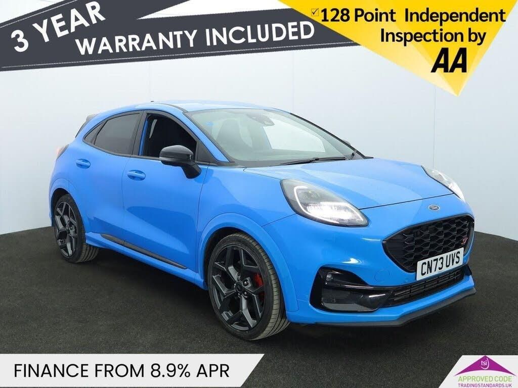 This 2023 Ford Puma ST offers exceptional value with its remarkably low mileage of just 15174 miles, a testament to its single owner. This stylish compact SUV is powered by a responsive 1.5L Petrol Engine, meeting Euro 6 emission standards. It comes equipped with a host of desirable features, including the convenient Ford KeyFree System for keyless entry, a Wireless Charging Pad integrated with Electronic Air Temperature Control for effortless device charging and climate management, and the impressive B&O Premium Audio System paired with Ford SYNC 3 Navigation, offering seamless connectivity with Android Auto, Apple CarPlay, and Bluetooth. For added convenience and safety, it also features Front Parking Sensors for easier manoeuvring and a Winter Pack that includes heated seats and a heated steering wheel. The performance of this Ford Puma ST is truly a standout, with a rapid 0-60mph acceleration time of just 6.7 seconds, demonstrating its sporty capabilities. These highlights, combined with its low mileage and single owner provenance, indicate that this vehicle offers a superior ownership experience compared to other similar models on the market. Oakwood Motor Company are an established family run dealership, home of the best used cars in Bury! We have hundreds of cars currently in stock from all your favourite brands including our specialist selection of Audi VW Group vehicles. Our fantastic rates are available on both HP and PCP finance, and we have extended warranties available for up to 3 years for complete peace of mind. Our experienced sales team are on hand to help you every step of the way, so give us a call today to reserve your new car with a refundable £100 deposit. Visit our used car dealership in Bury! We take all reasonable steps to ensure the accuracy of the information supplied in our advertising materials, however on occasion errors may occur. Images used are for illustrative purposes only. Please ensure you take the time to fully inspect your vehicle for specification/features which are important to you, and raise any queries with your Sales Executive.