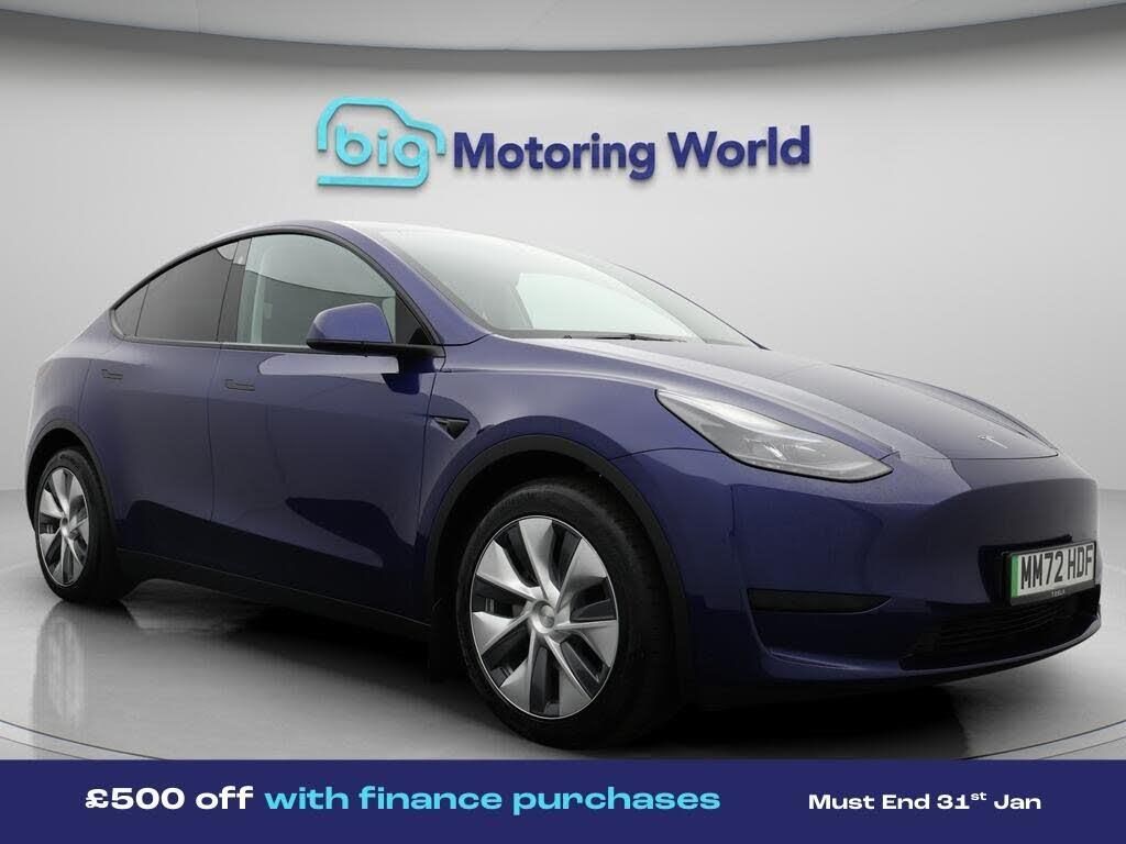 £500 towards your finance depo-Our Tesla Model Y is finished in Blue. Specification includes a range of fantastic features including £500 towards your finance deposit, Leather Seats, Satellite Navigation, Privacy Glass, Heated Seats, Wireless Phone Charging, Rear View Camera, Heated Rear Seats, Heated Steering Wheel, Bluetooth Specification information is supplied by CAPHPI and may vary to the actual car. This data does not form any part of a buying contact. Please check specification prior to purchase in-store. The MOT is valid until December 2026, visit bigmotoringworld.co.uk for more photos, a 360 tour, service history and a free HPI report.Were BIG on peace of mind and this Blue Tesla Model Y has completed our comprehensive 200 point inspection and passed all checks. Its ready for you to drive away with immediate collection in-store. We include a 90-day warranty as standard plus an option to extend for up to 3 years.Reserve this car exclusively for you, safely and securely at bigmotoringworld.co.uk, with a fully refundable £99 deposit. Test drive before you buy, with no commitment, no hassle and a completely haggle free experience. Still searching and want to see thousands more cars? We are BIG on choice with over 8000 cars to choose from.Visit our award winning web site bigmotoringworld.co.uk.Were Big Motoring World and were BIG on what matters to you.