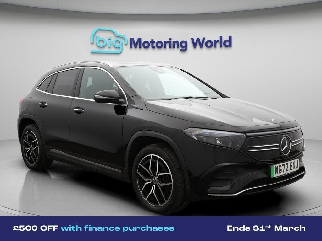 £500 towards your finance depo-Our Mercedes-Benz EQA is finished in Black. Specification includes a range of fantastic features including £500 towards your finance deposit, Comfort Pack, Panoramic Roof, 19'' Alloy wheels, Air Suspension, Apple CarPlay, AMG body styling, Parking Pack, Privacy Glass, Heated Seats Specification information is supplied by CAPHPI and may vary to the actual car. This data does not form any part of a buying contact. Please check specification prior to purchase in-store. The MOT is valid until November 2026, visit bigmotoringworld.co.uk for more photos, a 360 tour, service history and a free HPI report.Were BIG on peace of mind and this Black Mercedes-Benz EQA has completed our comprehensive 200 point inspection and passed all checks. Its ready for you to drive away with immediate collection in-store. We include a 90-day warranty as standard plus an option to extend for up to 3 years.Reserve this car exclusively for you, safely and securely at bigmotoringworld.co.uk, with a fully refundable £99 deposit. Test drive before you buy, with no commitment, no hassle and a completely haggle free experience. Still searching and want to see thousands more cars? We are BIG on choice with over 8000 cars to choose from.Visit our award winning web site bigmotoringworld.co.uk.Were Big Motoring World and were BIG on what matters to you.