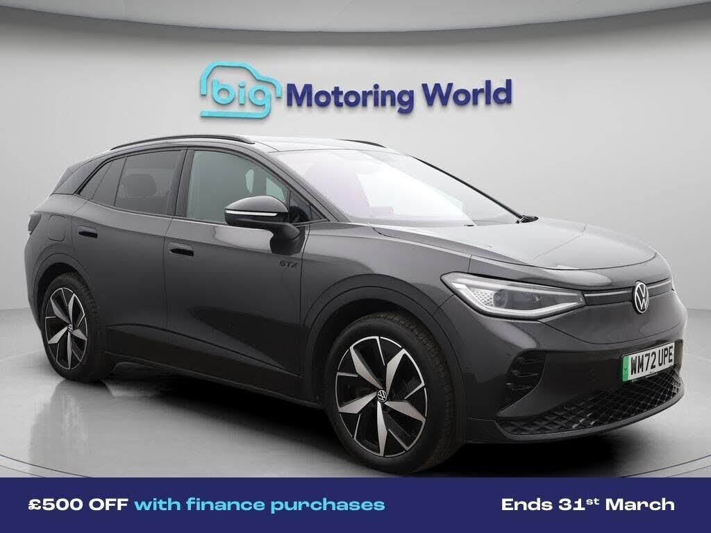 £500 towards your finance depo-Our Volkswagen ID.4 comes with optional extras worth £690. Specification includes a range of fantastic features including £500 towards your finance deposit, Head up Display, Apple CarPlay, Adaptive Cruise Control, Massage Function Seats, Privacy Glass, Heated Seats, Rear View Camera, Heated Steering Wheel, Internet Specification information is supplied by CAPHPI and may vary to the actual car. This data does not form any part of a buying contact. Please check specification prior to purchase in-store. The MOT is valid until February 2027, visit bigmotoringworld.co.uk for more photos, a 360 tour, service history and a free HPI report.Were BIG on peace of mind and this Grey Volkswagen ID.4 has completed our comprehensive 200 point inspection and passed all checks. Its ready for you to drive away with immediate collection in-store. We include a 90-day warranty as standard plus an option to extend for up to 3 years.Reserve this car exclusively for you, safely and securely at bigmotoringworld.co.uk, with a fully refundable £99 deposit. Test drive before you buy, with no commitment, no hassle and a completely haggle free experience. Still searching and want to see thousands more cars? We are BIG on choice with over 8000 cars to choose from.Visit our award winning web site bigmotoringworld.co.uk.Were Big Motoring World and were BIG on what matters to you.