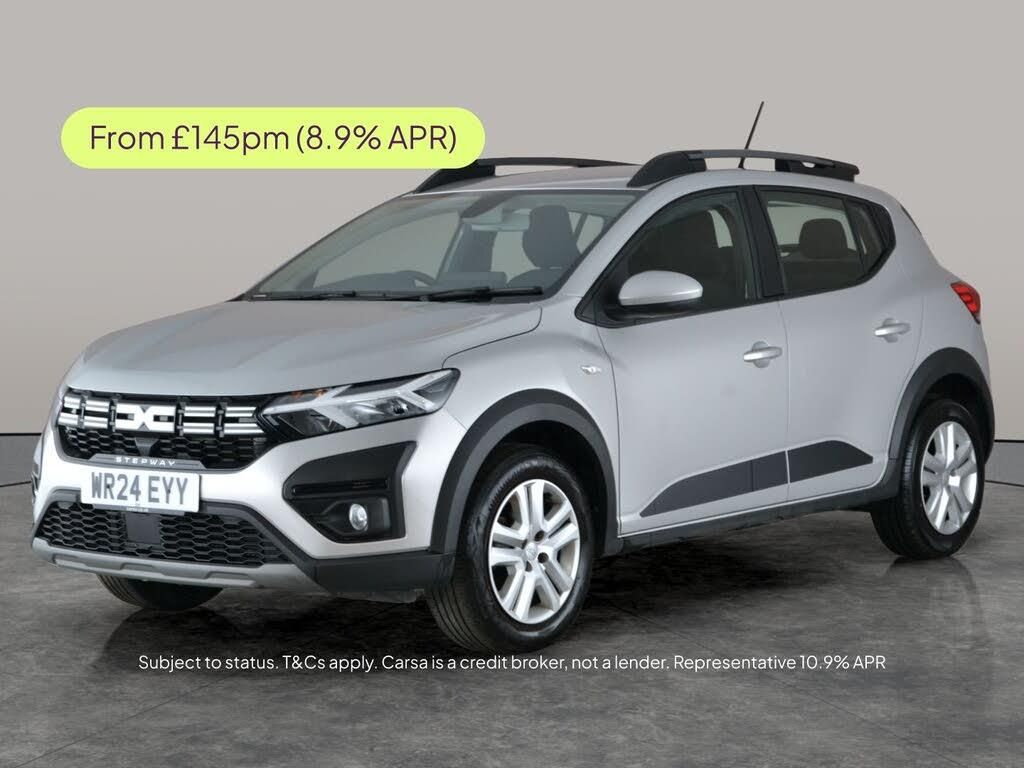 Experience the Dacia Sandero Stepway in stylish grey with standout Titanium Black cloth seats. Enjoy advanced tech like Apple CarPlay, keyless entry, and park assist with a reversing camera for extra peace of mind. Safety is a priority with lane departure warning and traffic sign recognition, while cruise control and air conditioning keep every journey comfortable. The perfect blend of practicality and modern features awaits. 1 service recorded, last serviced on 04/06/2025 at 12,876 miles. MOT to 18/03/2027. Visit our website for service history, online valuation, full vehicle specification plus multiple images. This vehicle is VAT qualifying. Any feature/option specified here is from 3rd party data. We cannot guarantee the accuracy of any specification supplied by a 3rd party. We recommend that you physically check the specification of the vehicle on site prior to purchase. This information does not form part of the buying contract. Terms & Conditions apply. We have over 2,000 cars available from our 10 national branches, check our website to see all our stock. Our Trustpilot rating is 4.4/5 with over 9,000 reviews.