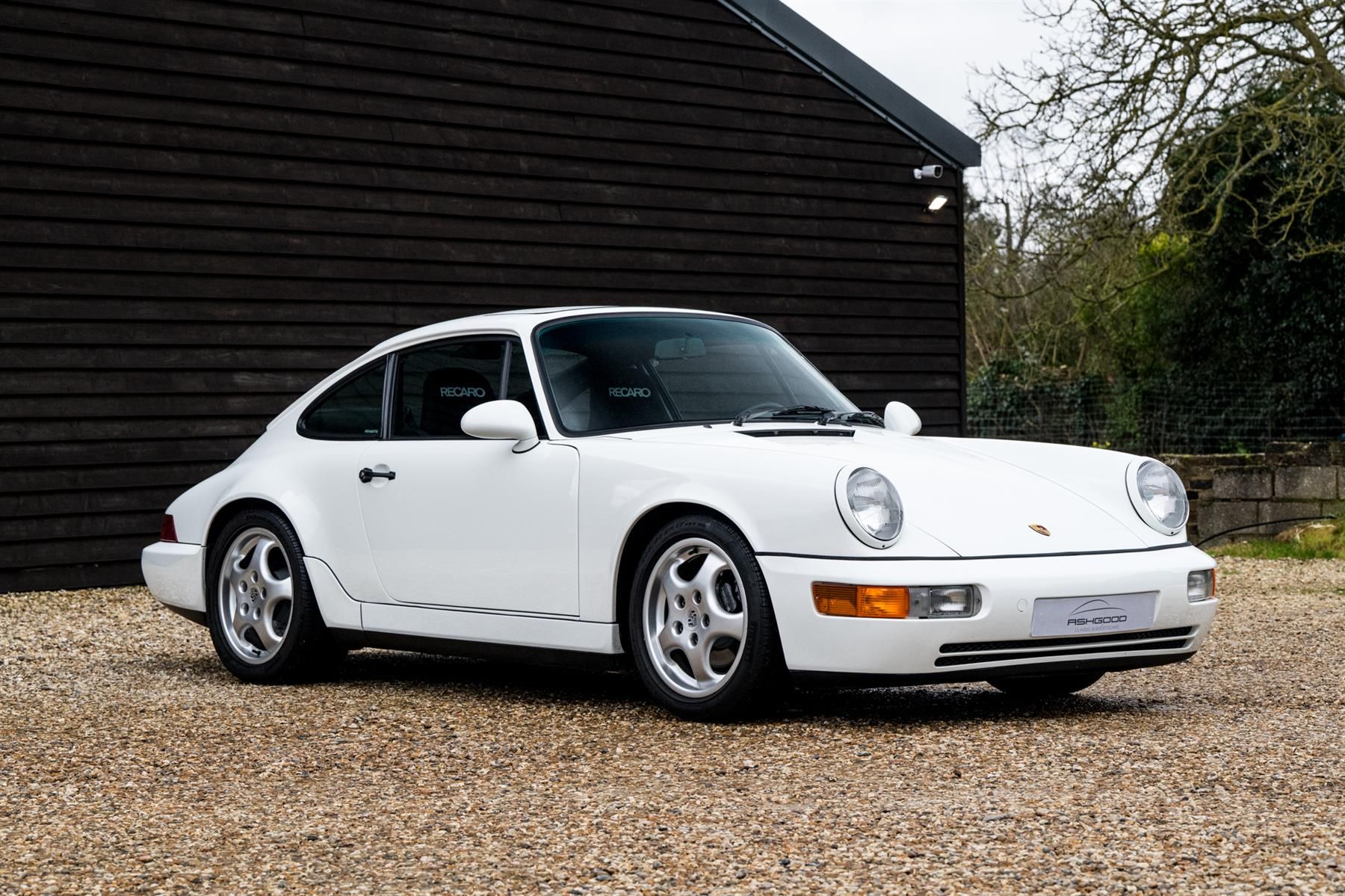 Freshly imported from Germany is this stunning 964 Carrera 2 manual finished in Grandprix White over Black Leather interior and Silver Cup alloys. Tastefully upgraded, this example benefits from a set of Bilstein B16 coilovers, a fresh-air intake, and more. It also benefits from some cosmetic upgrades, including teardrop door mirrors, a genuine set of Recaro bucket seats, rear-seat delete in the style of the Carrera RS, a Momo Prototypo steering wheel.