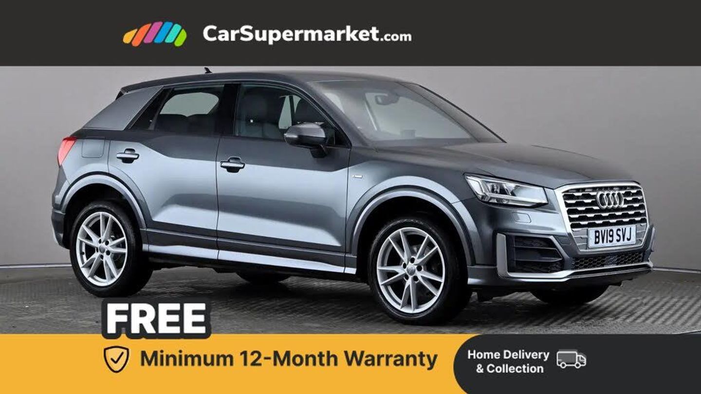 Audi drive select,Audi smartphone interface,Automatic start/stop system with recuperation,Bluetooth interface includes bluetooth audio streaming,MMI - Multi Media Interface control system,Power operated tailgate,Progressive steering,Service interval indicator,Audi music interface - apple iPod, apple iPhone, USB storage media, compatible MP3 players, 2 x USB charging points and 1 x Aux-in,CD Drive,MMI radio plus with 7" colour MMI screen and MMI controller,Black window trims,Chrome exhaust tailpipe,Electrically adjustable and heated door mirrors with integrated LED side indicators,Front and rear electric windows,Front underbody guard and rear diffuser trim in selenite silver,Front windscreen with grey tinted sunband,Headlight washers,Interior mirror,LED headlights with LED rear lights + dynamic rear indicators,LED indicator lights,Rain and light sensors,Rear wiper,S Line badges on the front wings,S Line body styling - front and rear bumpers, side skirts, radiator grille, rear diffuser insert and front air intakes,Black cloth headlining,Front centre armrest,Front headrests,Front sport seats with S embossed logo,Height/reach adjust steering wheel,Illuminated door sill trims with S logo,Manual seat adjustment including seat height adjustment for front seats,Stainless steel pedals,Storage compartments - Glovebox, cupholder compartment in centre console, storage compartment in rear centre console, front and rear door pockets,Three rear headrests,Non smoking pack - Q2,3x3 point rear seatbelts,6 airbags - Front, curtain and front side airbags,Electromechanical parking brake,Electronic stabilisation control including ABS, ASR and EDL,Extended and proactive pedestrian protection,Multi collision brake assist,Pre-sense front with pedestrian recognition,Seatbelt monitoring,Tyre pressure warning light,Warning triangle and first aid kit,Anti theft alarm,Anti theft wheel bolts,Central locking system with remote control key,Aluminium interior element,Cruise control,MMI SD card integrated nav with 3D map display, dynamic route guidance with TMC, MMI search, natural voice recognition and myAudi special destinations,Dynamic suspension,2 x SDXC card reader,DAB digital radio and AM/FM radio,Bumper in full body colour paint finish,Manual folding door mirrors,60/40 split folding rear seat bench,ISOFIX child seat mounting for front passenger with airbag deactivation and outer rear seat including top tether attachment point for outer rear seats,Hill hold assist,Electronically operated child locks