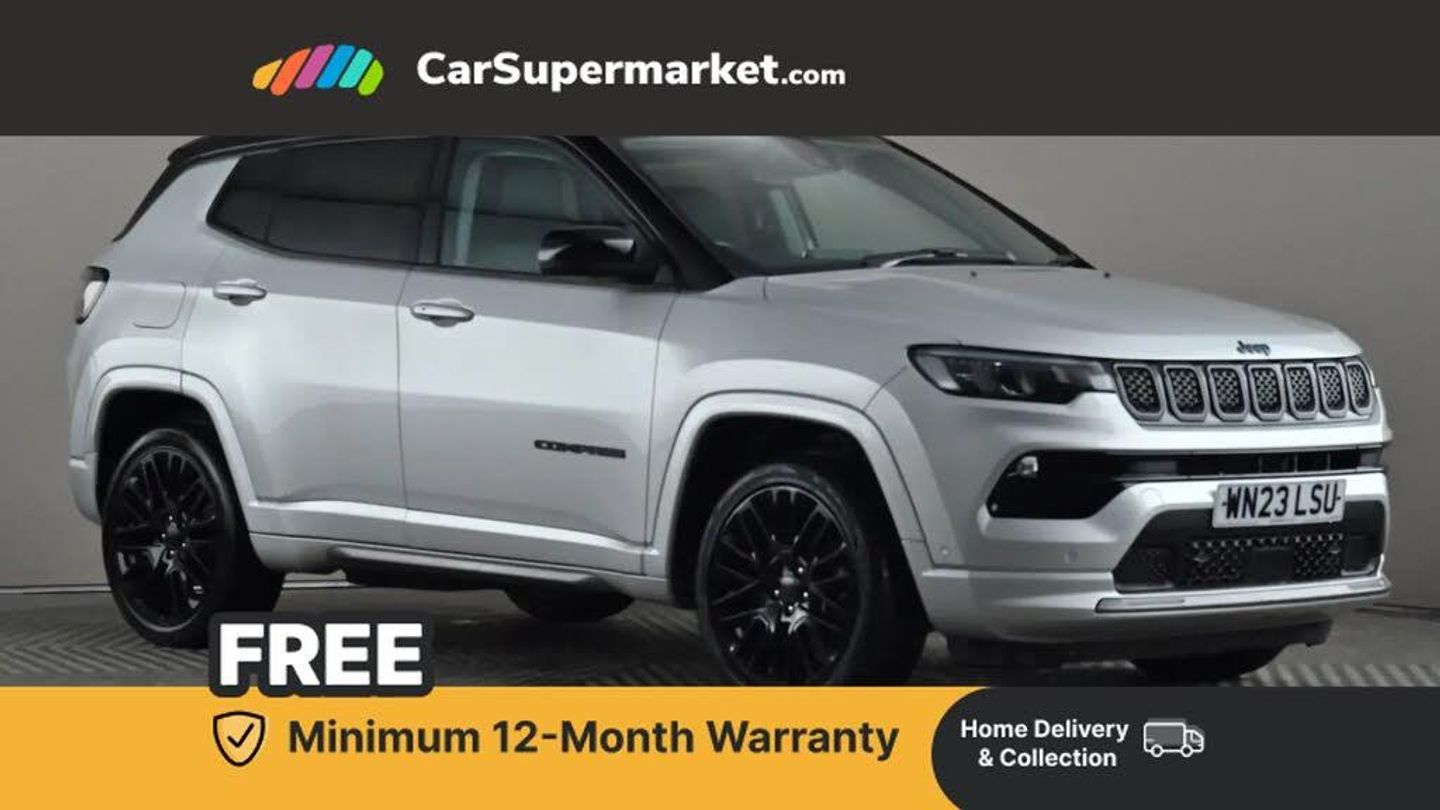 Cruise Control, Adaptive Cruise Control, Traffic Sign Recognition, Wireless Phone Charging, Bluetooth, Digital Radio, Sat Nav, Privacy Glass, Heated Front Seats, Heated Steering Wheel, 19" Alloy Wheels;A high-spec plug-in hybrid Compass S Model with four-wheel drive capability. Features include Adaptive Cruise Control, Cruise Control, Traffic Sign Recognition, Wireless Phone Charging, Satellite Navigation, Bluetooth, Digital Radio, Privacy Glass, Heated Front Seats, Heated Steering Wheel and 19" Alloy Wheels. Optional extras include Glacier bi-colour paint with Black Roof and Ventilated Leather Seats, totalling £2,350.00. Last serviced: 27/10/2025 | MOT due: 23/03/2026.