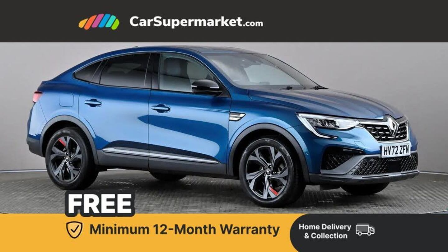 7" TFT Driver information display,Blind spot warning,Bluetooth system,EASY LINK 9.3" portrait touchscreen with navigation, Google search and traffic information,eCall emergency call system,Eco mode,EV button to activate pure mode,Front and rear parking sensors,Gear change indicator,Lane departure warning,Lane keep assist,Multi-sense - 3 driving modes and 8 ambient lighting,Rear cross traffic alert,Rear view camera,Renault automatic emergency assist,Smartphone integration compatible with Apple CarPlay and Android Auto,Traffic sign recognition with over speed prevention,Trip computer,Variable assistance electric power steering,Wireless phone charger,DAB radio,USB port,3rd brake light,Auto dimming rear view mirror,Automatic headlights,Automatic high / low beam,Automatic windscreen wipers with rain sensor,Black side door protection with gun metal insert,Body coloured bumpers,C-shaped LED front signature lighting,Chrome decopart on wing (fender molding) with R.S. Line badge,Double chromed exhaust tailpipes elements,Extra tinted rear windows and tailgate,Frameless rear view mirror,Front and rear electric windows,Front bumper with F1 blade and honeycomb front grille,Front driver window with one touch facility and anti-pinch function,Front grille with chrome on upper part,Full LED headlights,Glossy black door mirror and lower window lining,Gun Metal front and rear skid plates,Heated rear window,R.S. Line badges on front wing and hatch door,Rain sensor,Rear windscreen wiper,Shiny black shark fin antenna,Side mirrors adjustable electrically, electrically foldable, with defrosting and temperature sensor, automatically foldable at vehicle closure,3 seat bench in 2nd row,60:40 split and fixed base rear seats,Aluminium pedals,Automatic climate control with combined filter, humidity sensor and AQS,Black interior roof lining,Carbon style dashboard,Central console with storage,Driver's seat height adjustment,Electrically adjustable front seats,Front and rear head restraints,Height and reach adjustable steering wheel,ISOFIX child seat fixing points on rear outermost seats,LED front and rear roof lights,Passenger seat height adjuster,R.S. line black suede-leather upholstery with red/grey stiching,R.S. Line perforated leather steering wheel with red/black harmony and R.S. Line badge,Rear air vents,Red inserts on air vents,Single front passenger seat,Parking Pack - Hands-free parking & flank protection - Arkana,Winter pack - Arkana,3x3 point rear seat belts,ABS+EBA,Active emergency braking system,B Brake Mode - One pedal driving with increased regenerative braking,Distance warning alert,Driver airbag,Driver and passenger front and side airbag deactivation,Driver and passenger side airbags,Driver height adjustable seat belt,Electronic parking brake with auto hold,ESC (Electronic Stability Control),Front and rear no seatbelt warning sound,Front curtain airbags,Front head airbags,Hill start assist,Passenger airbag,Tyre pressure warning light,Anti drill door locks and locking fuel cap,Central door locking,Deadlocking system,Hands free keycard with Keyless access and start,RAID (Renault Anti-Intruder Device) automatic door locking,Rear side wing door and window child locking function (front driver door control panel),Superlocking,Thatcham alarm,18" Silverstone diamond alloy wheels with red inserts,Zanzibar Blue,RS Line Suede-Leather - Black with Red-Grey Stitching