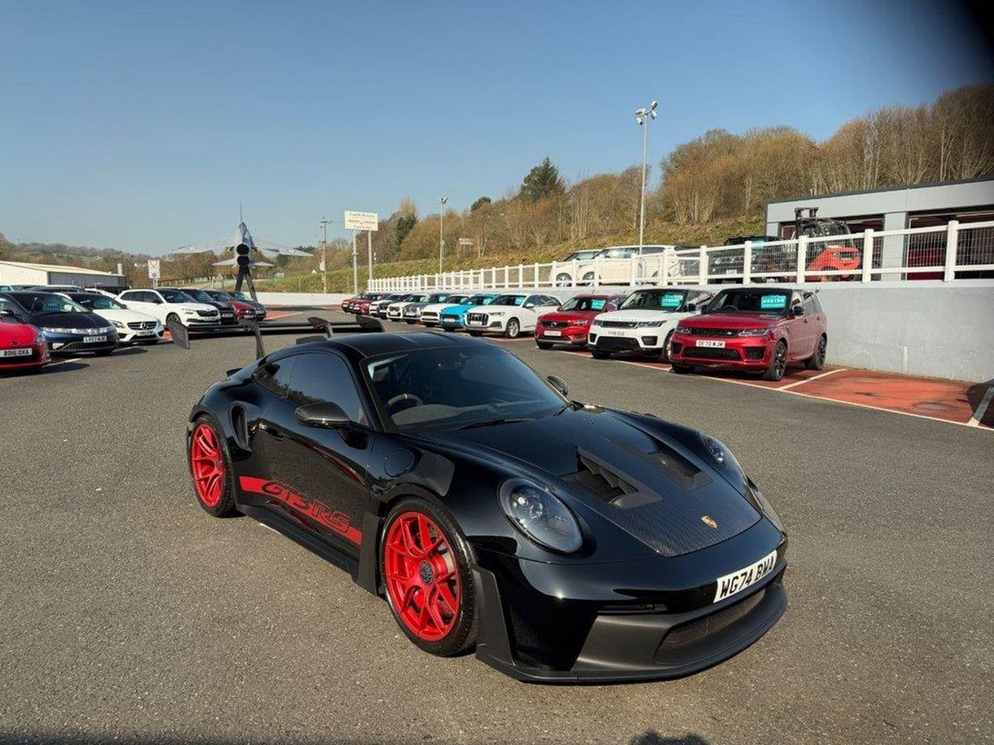 992 GT3 RS Weissach. Black with Exclusive Leather & Race-Tex with Guards Red accents. Only 1,850 miles & huge factory spec including Weissach Package with Carbon Fibre roll cage (CFRP), Club Sport Package, Side Logo 'Weissach RS' on the rear wing end, Front axle lift system, 20-/21-Inch GT3 RS forged Magnesium lightweight wheels painted in Pyro Red with matching Red calipers, Seat Belts in Guards Red, Rev counter in Guards Red, Chrono stopwatch instrument dial in Guards Red, BOSE Surround Sound System, LED main headlights in Black incl. Porsche Dynamic Light System (PDLS), Carbon Fibre Window trims, ParkAssist rear including reversing camera, Accent Package Logos Pyro Red, Light Design Package, Seat Belts - Guards Red, Race harnesses, Satin Finish Carbon Fibre interior Pack inc inch door Sill Guards & more. Only 1,850 miles, Porsche warranty until 30/10/2027. All of our vehicles are ready for same day drive away. CASTLE MOTORS purpose-built showroom & forecourt has a wide range of cars for sale, including some of the world's most prestigious automobiles. Founded in 1972, we are open 7 days a week. All of our vehicles are presented to the very highest standards possible having gone through our own comprehensive multi-stage preparation. Supplied finance figures are only a guide. Every effort has been made to ensure the accuracy of the above info but errors can occur please check with our sales team. . 20in Front 21in Rear Alloy Wheels - GT3 RS Forged Aluminium,20in Front 21in Rear Alloy Wheels - GT3 RS Forged Aluminium - Lightweight,20in Front 21in Rear Alloy Wheels - GT3 RS Forged Magnesium - Lightweight,64 Litre Fuel Tank,7-Speed Porsche Doppelkupplung - PDK,Accent Package Logos Pyro Red,Airbags,Alarm System with Interior Surveillance,Apple CarPlay,Black,BOSE Surround Sound System,Brake System - Brake Calipers in Red,Carbon Interior Package - Satin Finish,Chrono Package including Chrono Button on Steering Wheel and Lap Trigger Preparation,Chrono Stopwatch Instrument Dial - Guards Red,Club Sports Package,Cruise Control,Digital Radio,Door Sill Guards - Carbon - Satin Finish,Emergency Call Systems eCall and bCall,Equipment GT3,Exclusive Design Fuel Filler Cap,Exterior Mirror Lower Trim Painted in Exterior Colour Including Mirror Base in Black,Exterior Mirror Upper Trims in Carbon,Exterior Mirrors on Door Waist Rails - Electrically Adjustable and Heatable - Aspherical on Drivers Side,Fire Extinguisher,Floor