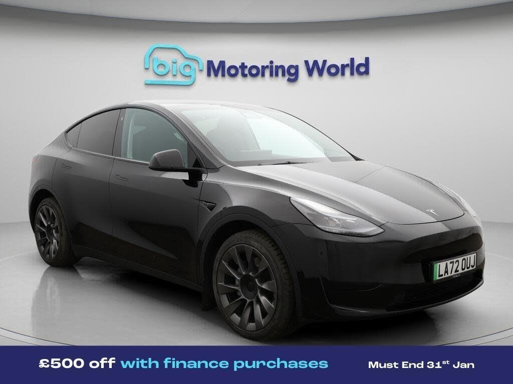 £500 towards your finance depo-Our Tesla Model Y is finished in Black. Specification includes a range of fantastic features including £500 towards your finance deposit, Panoramic Roof, Leather Seats, Satellite Navigation, Privacy Glass, Heated Seats, Wireless Phone Charging, Rear View Camera, Heated Rear Seats, Heated Steering Wheel Specification information is supplied by CAPHPI and may vary to the actual car. This data does not form any part of a buying contact. Please check specification prior to purchase in-store. The MOT is valid until February 2027, visit bigmotoringworld.co.uk for more photos, a 360 tour, service history and a free HPI report.Were BIG on peace of mind and this Black Tesla Model Y has completed our comprehensive 200 point inspection and passed all checks. Its ready for you to drive away with immediate collection in-store. We include a 90-day warranty as standard plus an option to extend for up to 3 years.Reserve this car exclusively for you, safely and securely at bigmotoringworld.co.uk, with a fully refundable £99 deposit. Test drive before you buy, with no commitment, no hassle and a completely haggle free experience. Still searching and want to see thousands more cars? We are BIG on choice with over 8000 cars to choose from.Visit our award winning web site bigmotoringworld.co.uk.Were Big Motoring World and were BIG on what matters to you.