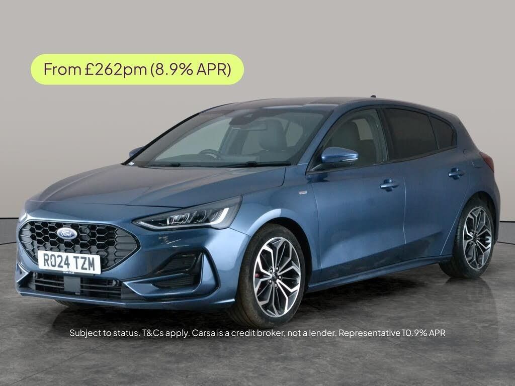 Experience the thrill of the Ford Focus ST-Line X! Enjoy the luxury of full Sensico seats in Ebony with striking red stitching, a heated steering wheel, and heated seats for ultimate comfort. High-tech features include a Bang & Olufsen upgraded sound system, large touchscreen with Apple CarPlay, Ford SYNC, and sat nav. Enjoy peace of mind with active lane assist, lane departure warning, and keyless entry. Stand out with stunning LED headlights and sporty details, all wrapped up in a dynamic blue hatchback. 1 service recorded, last serviced on 13/02/2026 at 15,740 miles. MOT to 25/03/2027. Visit our website for service history, online valuation, full vehicle specification plus multiple images. This vehicle is VAT qualifying. Any feature/option specified here is from 3rd party data. We cannot guarantee the accuracy of any specification supplied by a 3rd party. We recommend that you physically check the specification of the vehicle on site prior to purchase. This information does not form part of the buying contract. Terms & Conditions apply. We have over 2,000 cars available from our 10 national branches, check our website to see all our stock. Our Trustpilot rating is 4.4/5 with over 9,000 reviews.