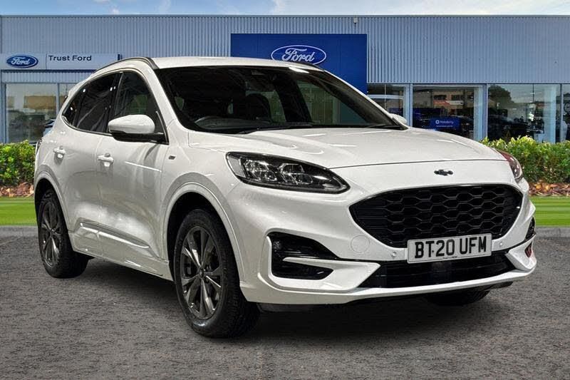 Driver impairment monitor, Ford easy fuel, Ford SYNC 3 with 8 colour touchscreen, App Link, andriod auto/apple carPlay and navigation with Ford pass connect, Front and rear parking sensors, Intelligent speed assist, Lane keeping aid with lane departure warning, Mobile phone wireless charging pad, Power assist steering, Selectable drive modes, Auto dimming rear view mirror, Auto headlamps with high and low beam, Auto wipers, Black roof rails, Front LED fog lights with cornering function, Full LED headlamps, Large rear spoiler, LED daytime running lights, LED rear lights, Power folding heated door mirrors with puddle lights, Power front/rear windows with global close, Privacy glass, Quickclear heated windscreen, ST Line body styling kit with unique front and rear fascia and bumper, rear painted diffuser, front painted skid plates, dark mesh upper grille, ST Line front scuff plates, Twin exhausts, 2nd row sliding seats, 8 way manual passenger seat including lumbar support and height adjust, Alloy pedals, Ambient lighting, Centre console with electronic parking brake, Dark headlining and pillars, Dual electronic automatic temperature control, Flat bottomed leather steering wheel in sensico with red stitching, Front and rear head restraints, Rear charging point, Sensico partial premium leather upholstery, Sports seats, ST Line front and rear floor mats, Unique ST Line leather gear knob, 3x3 point rear seatbelts, Airbags - front driver/passenger, front and rear curtain, Drivers knee airbag, Electronic stability control (ESC) and ABS, Ford MyKey Gen 2 safety system, Post collision braking, Powered child proof rear door locks, Pre collision assist with autonomous emergency braking, Red brake calipers, Tyre pressure monitoring system