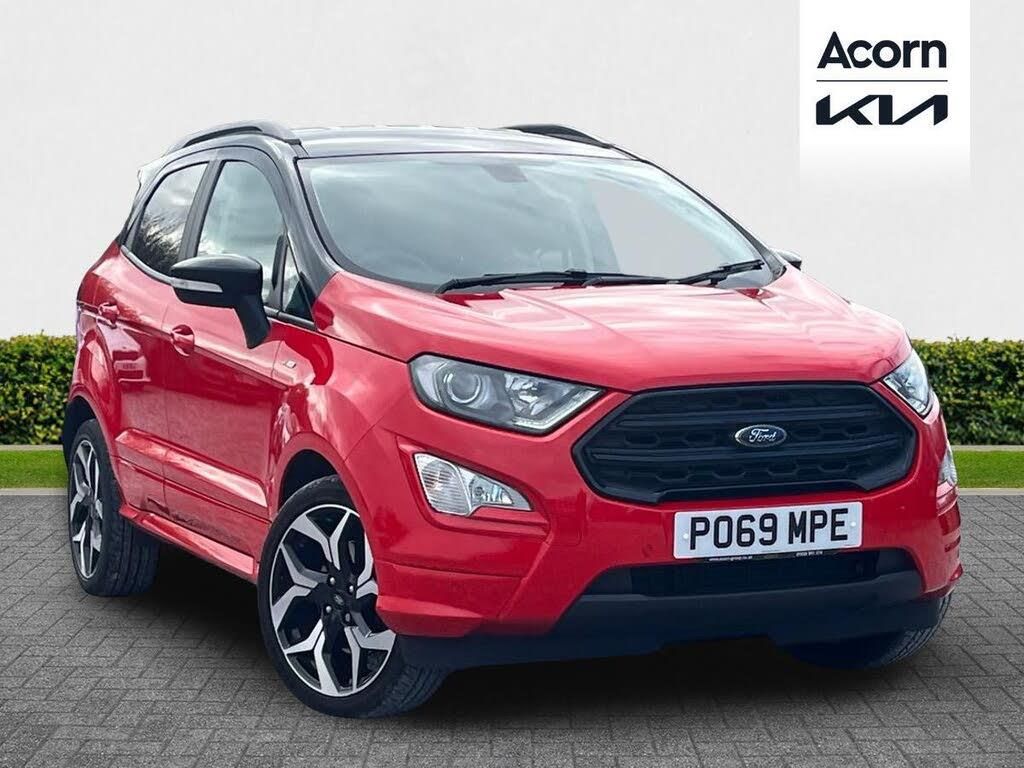 A warm welcome to Acorn Motor Group. Acorn Kia Warrington are pleased to present this wonderful Ford EcoSport ST-Line, presented in Red, which benefits from a Full Ford Service History! Equipped with a Turbocharged 1.0 litre Petrol Engine and paired with an Automatic Gearbox, comfortably returning 38.7mpg giving you brilliant value for your miles! This car features some incredible specification highlights including Warranty Included! Next MOT due August 2026! Sportier ST-Line Styling! Part Leather Seats! Ford SYNC3 Touchscreen Navigation Display! Apple Carplay and Android Auto! Cruise Control! Automatic Headlights! Keyless Start! ISOFIX!Here at Acorn Motor Group, all our cars are prepared to the highest standard, both mechanically and cosmetically. We offer an optional gold standard warranty up to 36 months for your peace-of-mind. We also offer a wide variety of flexible finance packages which are all tailored to suit you. For further information and to request your personalised video tour of this vehicle, please call our sales team today on 01925 697548.-Full Ford Service History!-Acorn Kia, the new name for Kia in Warrington! Part of the Multi-Award Winning, Acorn Motor Group!