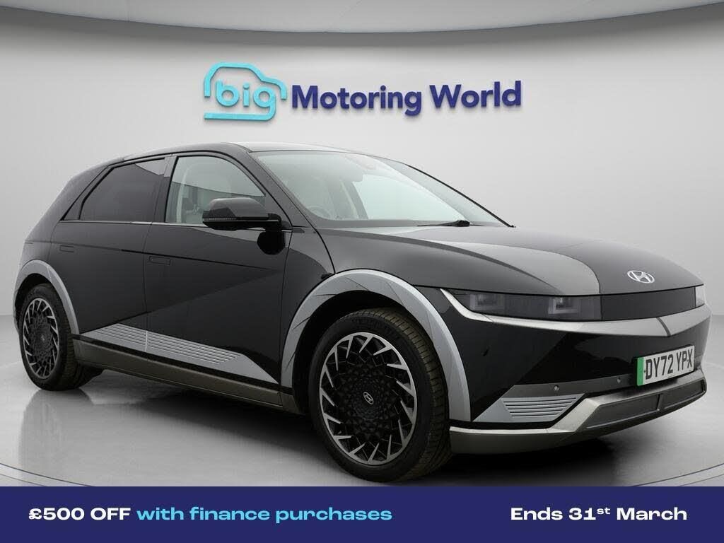 £500 towards your finance depo-Our Hyundai IONIQ 5 is finished in Black. Specification includes a range of fantastic features including £500 towards your finance deposit, Head up Display, 20'' Alloy Wheels, Leather Seats, Apple CarPlay, Android Auto, Satellite Navigation, Privacy Glass, Heated Seats, Wireless Phone Charging Specification information is supplied by CAPHPI and may vary to the actual car. This data does not form any part of a buying contact. Please check specification prior to purchase in-store. The MOT is valid until February 2027, visit bigmotoringworld.co.uk for more photos, a 360 tour, service history and a free HPI report.Were BIG on peace of mind and this Black Hyundai IONIQ 5 has completed our comprehensive 200 point inspection and passed all checks. Its ready for you to drive away with immediate collection in-store. We include a 90-day warranty as standard plus an option to extend for up to 3 years.Reserve this car exclusively for you, safely and securely at bigmotoringworld.co.uk, with a fully refundable £99 deposit. Test drive before you buy, with no commitment, no hassle and a completely haggle free experience. Still searching and want to see thousands more cars? We are BIG on choice with over 8000 cars to choose from.Visit our award winning web site bigmotoringworld.co.uk.Were Big Motoring World and were BIG on what matters to you.