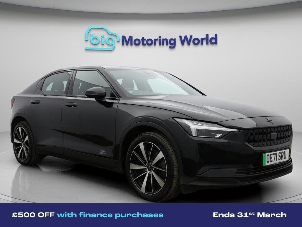 £500 towards your finance depo-Our Polestar Polestar 2 is finished in Black. Specification includes a range of fantastic features including £500 towards your finance deposit, Dynamic Chassis Control, Apple CarPlay, Satellite Navigation, Heated Seats, Rear View Camera, Memory Seats, Internet, Bluetooth, Parking Sensors Specification information is supplied by CAPHPI and may vary to the actual car. This data does not form any part of a buying contact. Please check specification prior to purchase in-store. The MOT is valid until December 2026, visit bigmotoringworld.co.uk for more photos, a 360 tour, service history and a free HPI report.Were BIG on peace of mind and this Black Polestar Polestar 2 has completed our comprehensive 200 point inspection and passed all checks. Its ready for you to drive away with immediate collection in-store. We include a 90-day warranty as standard plus an option to extend for up to 3 years.Reserve this car exclusively for you, safely and securely at bigmotoringworld.co.uk, with a fully refundable £99 deposit. Test drive before you buy, with no commitment, no hassle and a completely haggle free experience. Still searching and want to see thousands more cars? We are BIG on choice with over 8000 cars to choose from.Visit our award winning web site bigmotoringworld.co.uk.Were Big Motoring World and were BIG on what matters to you.