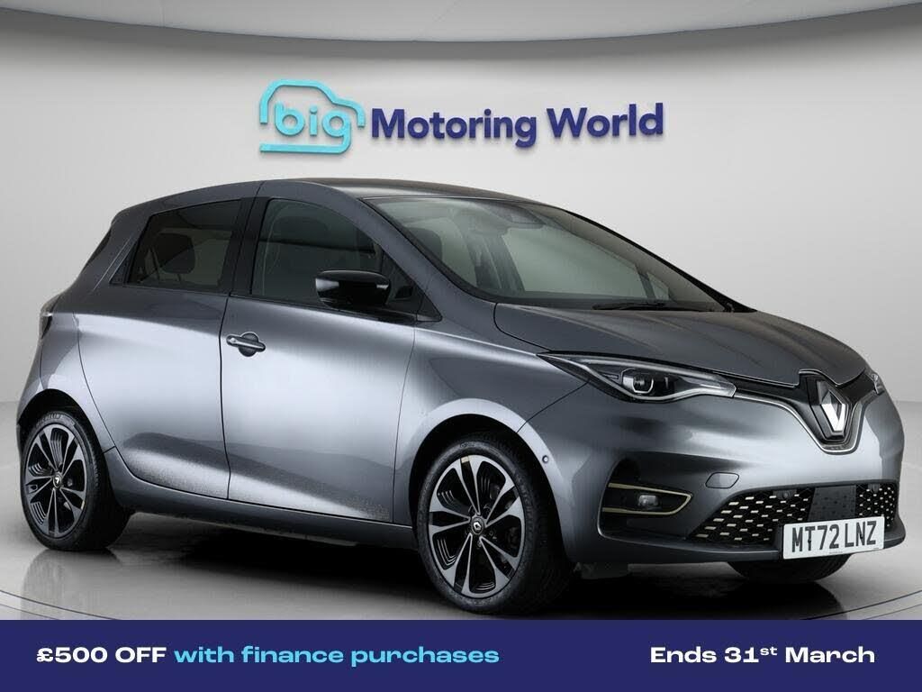 £500 towards your finance depo-Our Renault Zoe comes with optional extras worth £600. Specification includes a range of fantastic features including £500 towards your finance deposit, 17'' Alloy Wheels, Part Leather Seats, Lane Assist, Satellite Navigation, Privacy Glass, Heated Seats, Rear View Camera, Heated Steering Wheel, Internet Specification information is supplied by CAPHPI and may vary to the actual car. This data does not form any part of a buying contact. Please check specification prior to purchase in-store. The MOT is valid until January 2027, visit bigmotoringworld.co.uk for more photos, a 360 tour, service history and a free HPI report.Were BIG on peace of mind and this Grey Renault Zoe has completed our comprehensive 200 point inspection and passed all checks. Its ready for you to drive away with immediate collection in-store. We include a 90-day warranty as standard plus an option to extend for up to 3 years.Reserve this car exclusively for you, safely and securely at bigmotoringworld.co.uk, with a fully refundable £99 deposit. Test drive before you buy, with no commitment, no hassle and a completely haggle free experience. Still searching and want to see thousands more cars? We are BIG on choice with over 8000 cars to choose from.Visit our award winning web site bigmotoringworld.co.uk.Were Big Motoring World and were BIG on what matters to you.