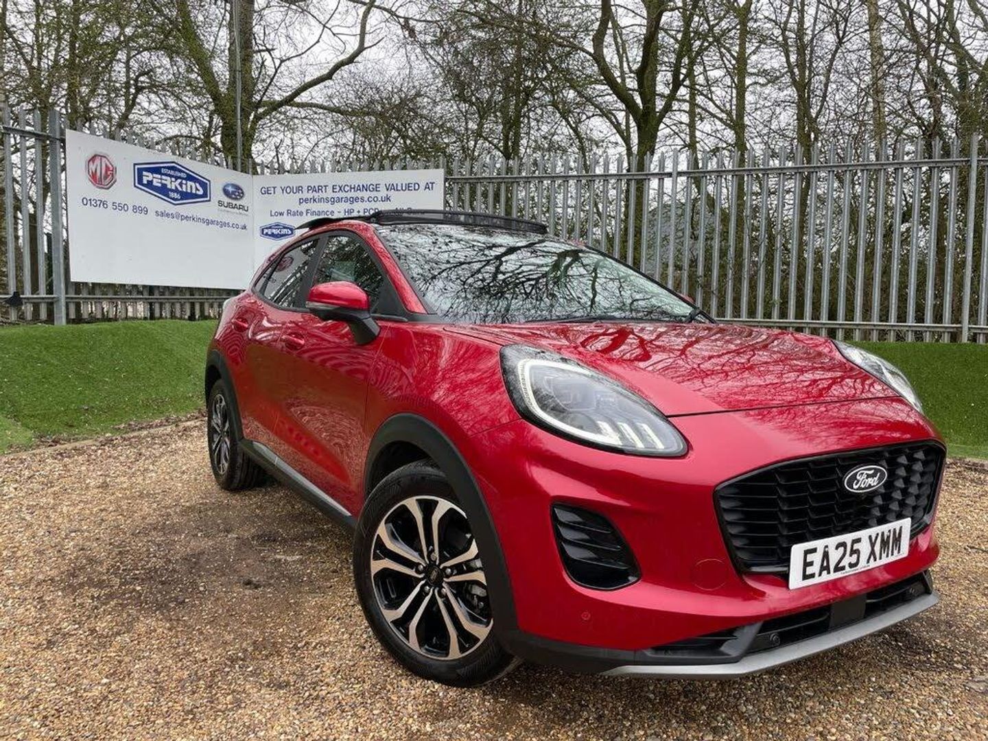 Ebony Metal interior.FORD PUMA TITANIUM Auto mHEV 125ps 5Dr in FANTASTIC Red / Black with Metal EA25XMM with 5289 miles. FORD Warranty until 14/04/2028 ** Next service due: APRIL 2027Opening Panoramic Glass Roof ** Driver Assistance Pack with Adaptive Cruise Control and BLIS ** Comfort Pack with Power Tailgate ** SYNC 4 Satellite Navigation with Wireless Apple car Play /Android auto Connectivity ** Winter Pack with Heated Front Seats and Steering wheel ** EATC Climate Control ** Wireless charge Pad ** Power/Fold Door Mirrors ** Front and Rear Parking Sensors with 360 Degree Camera ** Selectable Drive Modes - 125ps - 7 Speed DCT Automatic - we offer 8.9% APR Low Rate Finance and all part exchanges are welcome