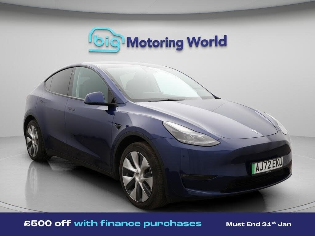 £500 towards your finance depo-Our Tesla Model Y is finished in Blue. Specification includes a range of fantastic features including £500 towards your finance deposit, Panoramic Roof, All Wheel Drive, Leather Seats, Satellite Navigation, Privacy Glass, Heated Seats, Wireless Phone Charging, Rear View Camera, Heated Rear Seats Specification information is supplied by CAPHPI and may vary to the actual car. This data does not form any part of a buying contact. Please check specification prior to purchase in-store. The MOT is valid until December 2026, visit bigmotoringworld.co.uk for more photos, a 360 tour, service history and a free HPI report.Were BIG on peace of mind and this Blue Tesla Model Y has completed our comprehensive 200 point inspection and passed all checks. Its ready for you to drive away with immediate collection in-store. We include a 90-day warranty as standard plus an option to extend for up to 3 years.Reserve this car exclusively for you, safely and securely at bigmotoringworld.co.uk, with a fully refundable £99 deposit. Test drive before you buy, with no commitment, no hassle and a completely haggle free experience. Still searching and want to see thousands more cars? We are BIG on choice with over 8000 cars to choose from.Visit our award winning web site bigmotoringworld.co.uk.Were Big Motoring World and were BIG on what matters to you.