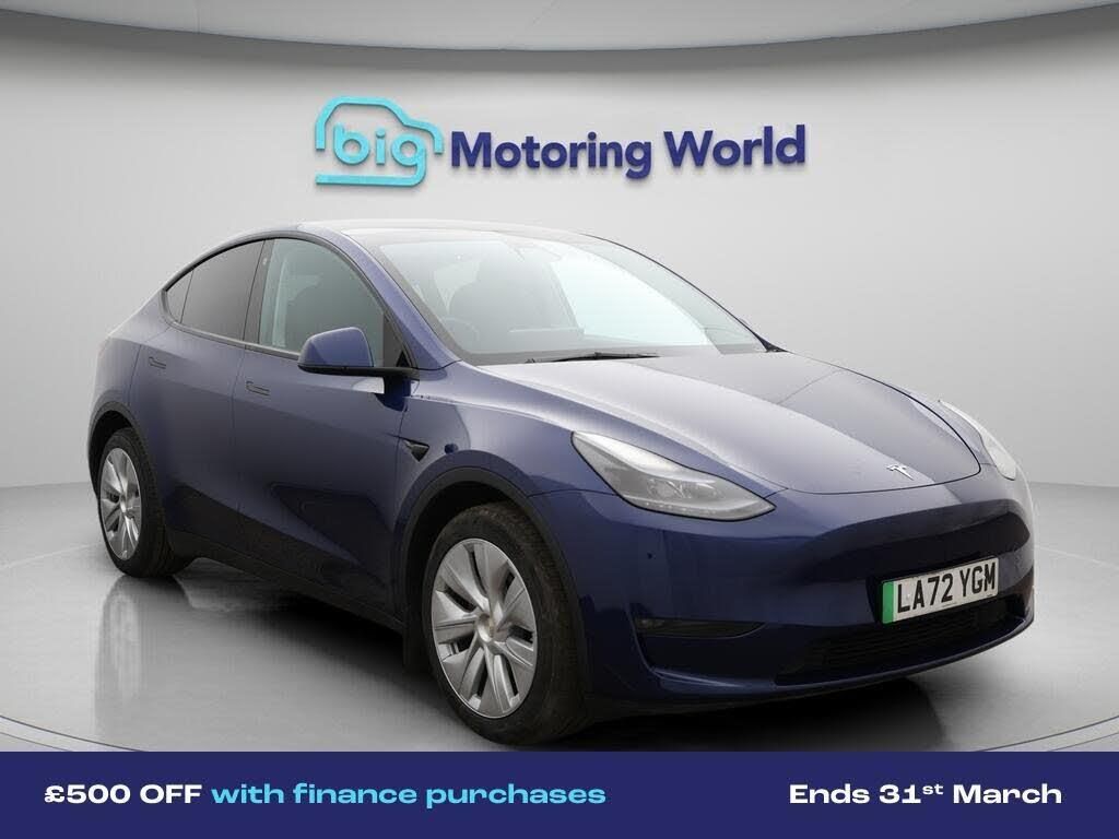 £500 towards your finance depo-Our Tesla Model Y is finished in Blue. Specification includes a range of fantastic features including £500 towards your finance deposit, All Wheel Drive, Heated Seats, Wireless Phone Charging, Heated Rear Seats, Heated Steering Wheel, Bluetooth, Blind Spot Assist, Ambient Lighting, Climate Control Specification information is supplied by CAPHPI and may vary to the actual car. This data does not form any part of a buying contact. Please check specification prior to purchase in-store. The MOT is valid until February 2027, visit bigmotoringworld.co.uk for more photos, a 360 tour, service history and a free HPI report.Were BIG on peace of mind and this Blue Tesla Model Y has completed our comprehensive 200 point inspection and passed all checks. Its ready for you to drive away with immediate collection in-store. We include a 90-day warranty as standard plus an option to extend for up to 3 years.Reserve this car exclusively for you, safely and securely at bigmotoringworld.co.uk, with a fully refundable £99 deposit. Test drive before you buy, with no commitment, no hassle and a completely haggle free experience. Still searching and want to see thousands more cars? We are BIG on choice with over 8000 cars to choose from.Visit our award winning web site bigmotoringworld.co.uk.Were Big Motoring World and were BIG on what matters to you.