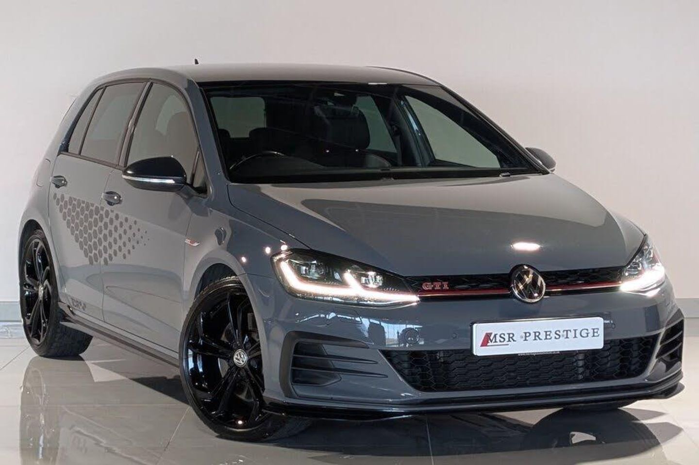 MSR PRESTIGE ARE DELIGHTED TO OFFER THIS STUNNING VOLKSWAGEN GOLF 2.0 TSI GTI TCR HATCHBACK DSG (290PS) FINISHED IN GREY AND COMPLIMENTED WITH BLACK LEATHER INTERIOR. THIS HIGH-PERFORMANCE HOT HATCH COMBINES SPORTY DESIGN, EXCEPTIONAL PERFORMANCE AND EVERYDAY PRACTICALITY. THIS VEHICLE BENEFITS FROM FULL DEALER SERVICE HISTORY, SHOWING IT HAS BEEN WELL MAINTAINED THROUGHOUT ITS LIFE. THE EXTERIOR PRESENTS A SPORTY AND AGGRESSIVE LOOK WITH XENON HEADLIGHTS, DAYTIME RUNNING LIGHTS, GLOSS BLACK ALLOY WHEELS, RED BRAKE CALLIPERS AND PRIVACY GLASS. A MAJOR HIGHLIGHT IS THE UPGRADED AKRAPOVIC EXHAUST SYSTEM WHICH ENHANCES BOTH PERFORMANCE AND SOUND, PERFECTLY MATCHING THE GTI TCR'S SPORTING CHARACTER. INSIDE, THE CABIN OFFERS A COMFORTABLE AND TECHNOLOGY-FILLED DRIVING ENVIRONMENT. FEATURES INCLUDE ELECTRIC WINDOWS, ELECTRIC MIRRORS, ELECTRIC FOLDING MIRRORS AND HEATED MIRRORS, ALONG WITH UNIQUE TCR DOOR FLOOD LIGHTS THAT ADD A PREMIUM TOUCH. THE VEHICLE ALSO INCLUDES AUTO LIGHTS, A MULTI-FUNCTIONAL STEERING WHEEL, VOICE COMMAND AND TELEPHONE CONNECTIVITY FOR ADDED CONVENIENCE. TECHNOLOGY IS A KEY FEATURE WITH A DIGITAL DASH DISPLAY AND A PREMIUM DYNAUDIO SOUND SYSTEM DELIVERING EXCEPTIONAL AUDIO QUALITY. THE MULTIMEDIA SYSTEM INCLUDES SATELLITE NAVIGATION, DAB RADIO, FM RADIO, AM RADIO, CD, SD CARD, BLUETOOTH AND USB CONNECTIVITY. APPLE CARPLAY AND ANDROID AUTO ARE ALSO INCLUDED FOR SEAMLESS SMARTPHONE INTEGRATION. DRIVER COMFORT AND CONTROL ARE ENHANCED WITH ADAPTIVE CRUISE CONTROL, DRIVE MODES, START/STOP TECHNOLOGY, KEYLESS START, ELECTRIC HANDBRAKE WITH AUTOHOLD, AND DUAL CLIMATE CONTROL WITH AIR CONDITIONING. HEATED SEATS PROVIDE ADDITIONAL COMFORT DURING COLDER MONTHS. PARKING AND MANOEUVRING ARE MADE EASY WITH FRONT AND REAR PARKING SENSORS AND A REVERSE CAMERA, WHILE PRACTICAL FEATURES SUCH AS AN ARMREST AND CUP HOLDERS ADD TO THE EVERYDAY USABILITY OF THIS VEHICLE. AT MSR PRESTIGE, WE TAKE PRIDE IN OFFERING HIGH-QUALITY VEHICLES THAT COMBINE STYLE, PERFORMANCE AND COMFORT. OUR CAREFULLY SELECTED CARS ARE DESIGNED TO DELIVER AN EXCEPTIONAL DRIVING EXPERIENCE, WHETHER YOU'RE COMMUTING, CRUISING OR EMBARKING ON A ROAD TRIP. COMPETITIVE FINANCE AVAILABLE. EXTENDED WARRANTIES AVAILABLE. PART EXCHANGE WELCOME AT TRADE PRICE. DELIVERY AVAILABLE NATIONWIDE. PLEASE NOTE: THE NUMBER OF KEYS FOR EACH VEHICLE IS TO BE CONFIRMED WITH A SALES REPRESENTATIVE. VEHICLES MAY INCLUDE AESTHETIC STYLING UPGRADES SUCH AS UPGRADED ALLOYS, DE-CHROME, WRAPPING, CALIPER PAINT OR EXTERIOR MODIFICATIONS. COSMETIC DEFECTS AND GENERAL WEAR AND TEAR SUCH AS MINOR SCRATCHES AND STONE CHIPS ARE TO BE EXPECTED ON ANY PRE-OWNED VEHICLE. VEHICLE INFORMATION AND SPECIFICATIONS ARE PROVIDED TO THE BEST OF OUR KNOWLEDGE—PLEASE SPEAK TO A SALES REPRESENTATIVE TO CONFIRM DETAILS. VISIT MSR PRESTIGE TODAY.
