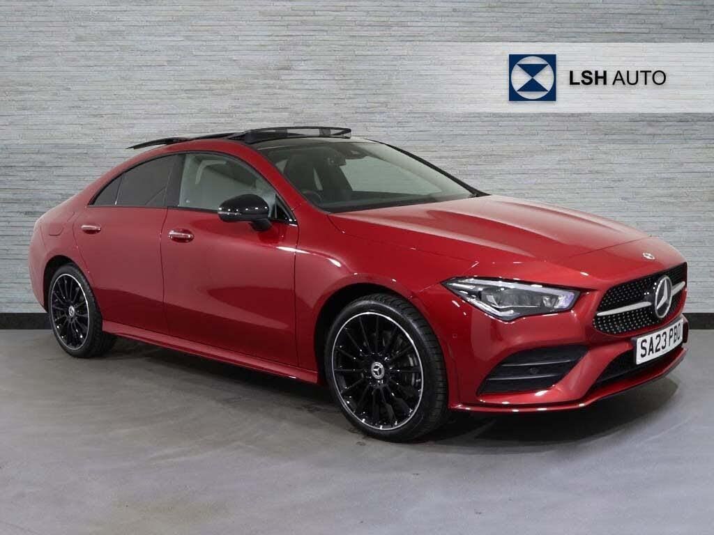 This 2023 Mercedes-Benz CLA250e AMG Line Night Edition (Premium Plus) boasts an exceptionally low mileage of just 11,555 miles, a testament to its single owner and meticulous care. This Euro 6 compliant plug-in hybrid, powered by a 1.3L petrol engine, offers an efficient and dynamic driving experience. It comes with a 12 month warranty for your peace of mind, and its MOT is valid until April 2027. Furthermore, this Mercedes-Benz is manufacturer approved, having a full dealership service history, with its last service completed on 2026-04-02 at 11,555 miles.The AMG Line Night Edition trim enhances the already stylish CLA, while the Premium Plus package adds further refinement. Notable features include the comfort of heated front seats, ensuring a pleasant journey in all conditions. The very low mileage for its age, combined with its manufacturer approved status and comprehensive service history, clearly sets this vehicle apart from others on the market, indicating a superior level of maintenance and condition.-*SUNROOF PREMIUM PLUS SAT NAV*-CLA250e 15.6kWh AMG Line Night Edition (Premium Plus) Coupe 4dr Petrol Plug-in Hybrid-LSH Auto UK Ltd - An LSH Group Company. The Worlds Largest Retailer of Mercedes-Benz Passenger Cars