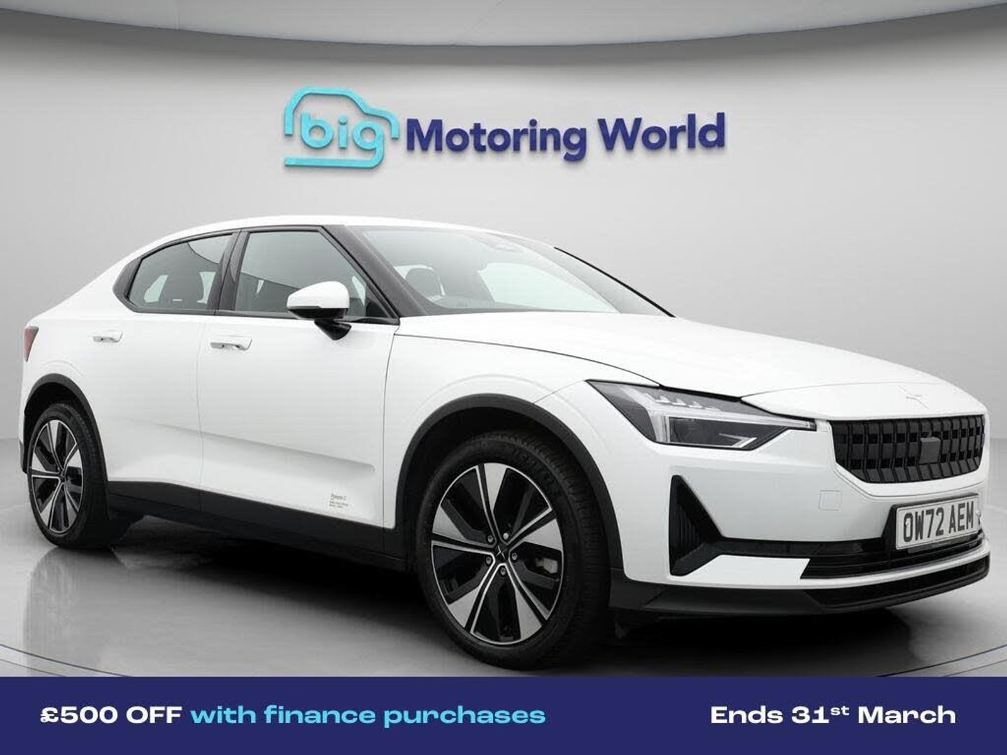 £500 towards your finance depo-Our Polestar Polestar 2 is finished in White. Specification includes a range of fantastic features including £500 towards your finance deposit, Dynamic Chassis Control, 19'' Alloy wheels, Electric Seats, Satellite Navigation, Heated Seats, Rear View Camera, Memory Seats, Internet, Bluetooth Specification information is supplied by CAPHPI and may vary to the actual car. This data does not form any part of a buying contact. Please check specification prior to purchase in-store. The MOT is valid until February 2027, visit bigmotoringworld.co.uk for more photos, a 360 tour, service history and a free HPI report.Were BIG on peace of mind and this White Polestar Polestar 2 has completed our comprehensive 200 point inspection and passed all checks. Its ready for you to drive away with immediate collection in-store. We include a 90-day warranty as standard plus an option to extend for up to 3 years.Reserve this car exclusively for you, safely and securely at bigmotoringworld.co.uk, with a fully refundable £99 deposit. Test drive before you buy, with no commitment, no hassle and a completely haggle free experience. Still searching and want to see thousands more cars? We are BIG on choice with over 8000 cars to choose from.Visit our award winning web site bigmotoringworld.co.uk.Were Big Motoring World and were BIG on what matters to you.