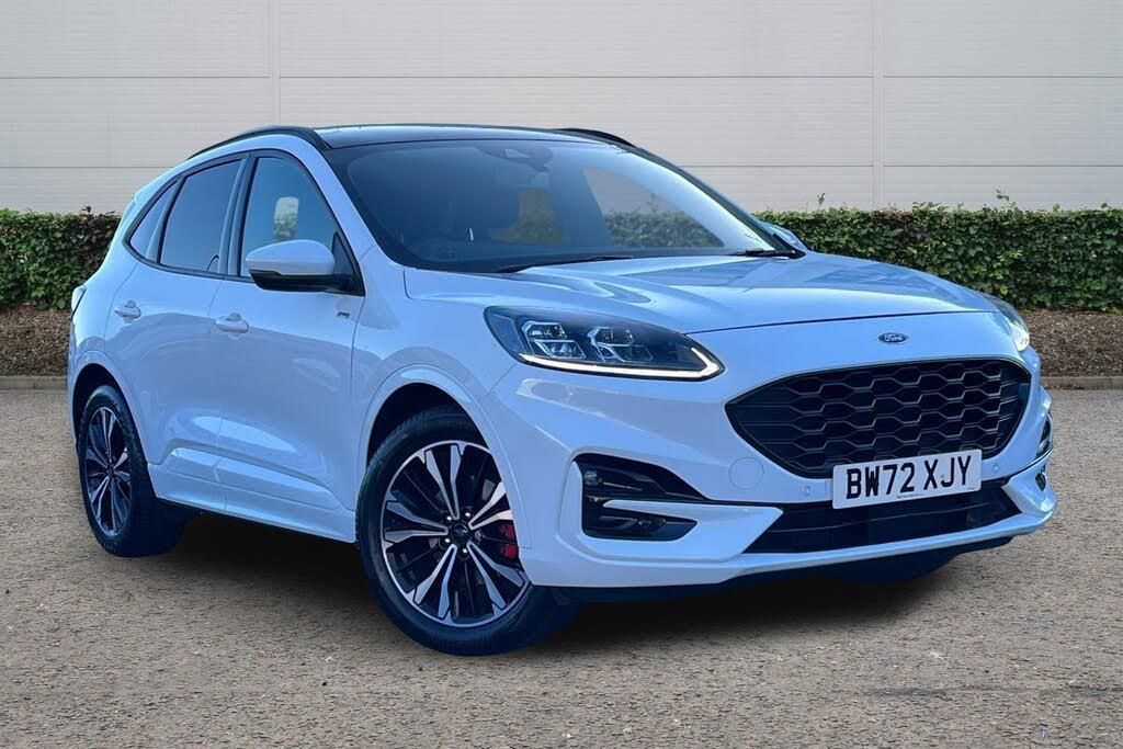 Partial Sensico - Rapton Cloth - Black with Red Stitching, 10-Way Power Adjustable Drivers Seat, 12V Power Point in Floor Console, 12v Power Point in Cargo Area, 12v Socket - Voltage Regulator, 19in Alloy Wheels - 5x2 Spoke - High Gloss - Machined, 2nd Row Sliding Seats, 8-Way Manual Passenger Seat including Lumbar Support and Height Adjust, ABS - Anti-Lock Braking System with Enhanced Electronic Stability Control - ESC with Traction Control - Emergency Brake Assist - EBA - Hill Start Assist, Air Conditioning - Electronic Automatic Temperature Control - EATC, Airbag - Driver and Front Passenger Side, Airbag - Front Passenger Deactivation Switch, Airbags - Driver and Front Passenger, Airbags - Front and Rear Side Curtain, Aluminium - Finish Front Scuff Plates with ST-Line Script, Aluminium Foot Pedals - ST-Line Design, Ambient Lighting, Auto Dimming Rear View Mirror, Auto Wipers, Automatic Door Relocking, Automatic Headlights with Auto High-Low Beam, Black Roof Rails, Centre Console with Electronic Parking Brake, Cruise Control with Intelligent Speed Limiter, Driver and Passengers Sun Visor with Illumination, Dual Exhaust Tailpipes with Unique Brushed Stainless Steel Finish, EPAS - Electric Power Assisted Steering, Electric Childproof Locks on Rear Doors, Electric Parking Brake with Auto Hold, Electrical Charging Point in Second Row, Engine Immobiliser - SecuriLock, Exterior Door Handles - Body Coloured, Ford Easy Fuel System, Ford Keyfree System - Keyless Entry with Ford Power Starter Button, Ford SYNC3 DAB Navigation System, Front Lower Grille - Ebony Black Mesh, Front Seats - 2-Way Manual Height Adjust Passive Head Restraints, Front Seats - Drivers and Passengers Seatback Map Pockets, Front Upper Grille - Carbon Black Honeycombe Mesh and High-Gloss Black Surround, Front Windows - Laminated Glass, Front and Rear Bumper - Sporty Body Colour with Rear Ebony High-Gloss Insert, Front and Rear Floor Mats with Red Stitching, Front and Rear Parking Sensors, Full Digital 12.3in Instrument Cluster, Full LED Headlamps, Gear Shift - Unique Sensico-Trimmed Knob with Satin Aluminium Insert and Red Gaiter Stitching, Glovebox Lights, Handsfree Power Tailgate, Headlights - Automatic Follow Me Home Lighting, Headlights - Levelling System - Manual, Headlights - Unique Bending, Headliner - Sports Dark, Heated Driver and Passenger Seats, Heated Rear Seats, Heated Steering Wheel, Heated and Power Folding Door Mirrors with Puddle Lights, High-Mounted Brake Light, Kuga Badge, LED Daytime Running Lights, LED Fog Lights - Front, Lane Keeping Aid with Lane Departure Warning, Large Rear Spoiler, Load Compartment - Lights, Load Compartment - Tie Down Hooks, Load Compartment Carpet, Locking Wheel Nuts, Lower Bodyside Moulding - Body Colour, Lower Door Frame Beltline - Black, Mini Overhead Console with Sunglasses Holder Bin, MyKey, Power Door Deadlocks - Double Locking, Power Door Locks, Power Opening Panoramic Roof, Pre-Collision Assist with Autonomous Emergency Braking - Camera Detection, Privacy Glass, Quickclear Heated Windscreen, Rear Duct on B-Pillar, Rear Lights - LED, Rear Seat - 60-40 Split Folding Seats, Rear Seat Centre Head Restraint, Rear Seats - 2-Way Head Restraint Up-Down, Rear Seats - Folding Centre Armrest with Integrated Cup Holder, Rear Seats - Sliding Seat Adjust Tracks - Fore-Aft, Rear View Camera, Red Brake Calipers, Remote Tailgate Release, Removable Package Tray, Rocker Panel Mouldings - Body Colour - ST-Line Design, ST-Line Badge on Left and Right Side Wings, ST-Line Bodystyling Kit, ST-Line Front and Rear Bumper Moulding - Body Colour, Seat Belt - Drivers - Front Passenger and Rear Seat Belt Reminder Alert, Seat Belts - Front 3-Point Seatbelts with Load Limiter, Seat Belts - Front Height Adjustable, Seat Belts - Rear Retractable Rear Belt - 3-Point All Positions, Seats - ISOFIX Mounting Provision for Child Seats - Outer Seats Only, Selectable Drive Modes, Single Rear Fog Light, Sports Seats, Steering Column - Locking Electric, Steering Column - Rake and Reach Adjustment, Steering Wheel - ST-Line Sports-Style Perforated Sensico-Trimmed with Red Stitching, Suspension - Sports, Tailgate Handle - Body Colour, Tether Anchorage - Two Rear Seat Top Tether Anchorage Restraints, Thatcham Category 1 Perimeter and Volume Sensing Alarm, Tow Hooks - Front and Rear, Trip Computer, Tyre Inflation Kit, Tyre Pressure Monitoring System, Upper Door Frame Beltline - Black, Windows - Power Front and Rear with Global Closing, Winter Pack, Wiper - Intermittent Rear Window Wiper, Wrong Way Alert, eCall