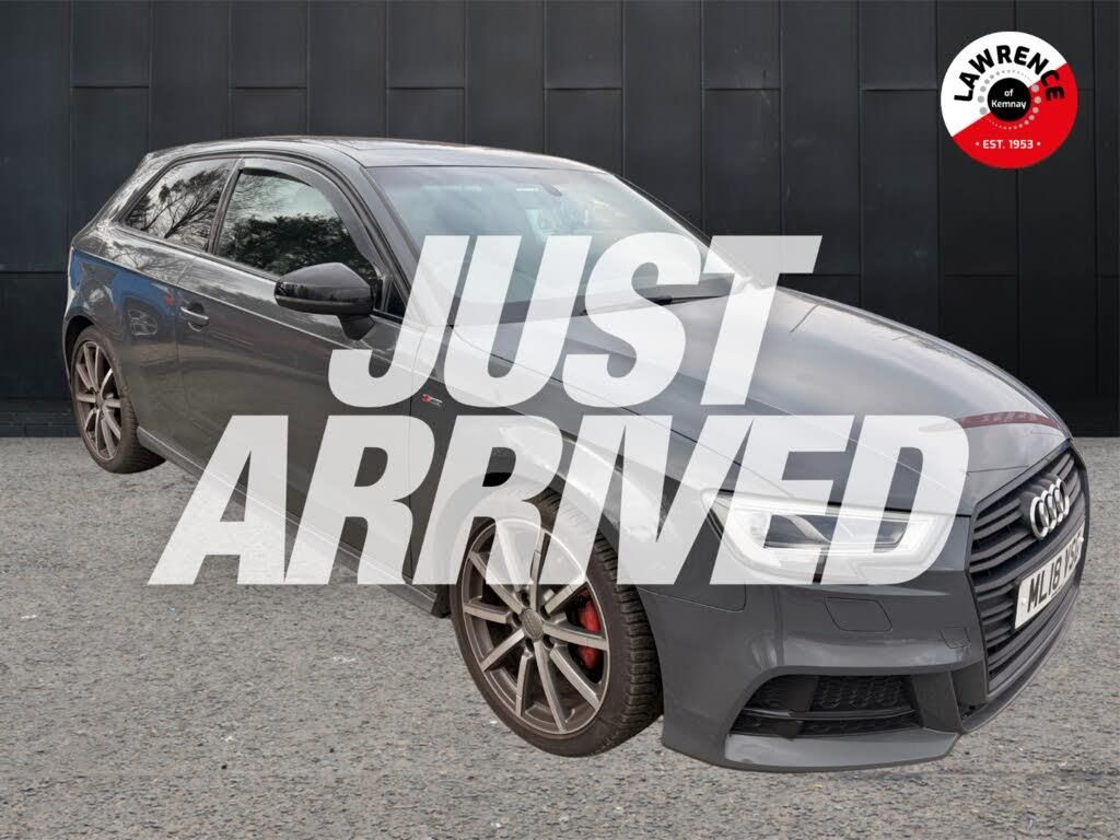 Audi connect, Audi drive select, Audi smartphone interface, Colour driver's information system display, Mobile telephone preparation - bluetooth interface, SD card based satellite navigation system, Service interval indicator, Speed limit display, Voice control system, 2 USB ports, Audi music interface, Auxiliary input socket, CD player, DAB Digital radio, MMI radio plus with 7" colour MMI screen and MMI controller, Auto dimming rear view mirror with light and rain sensors, Black door mirrors, Black window surrounds, Body colour bumpers with black insert, Body colour roof spoiler, Chrome exhaust tailpipes, Electric front windows, Electric operated/heated door mirrors, Heated windscreen washer jets, LED daytime running lights, Matt black radiator grille, Privacy glass, Rear wiper, S Line body styling, Sport specific side air inlet grille and diffuser insert, 3 adjustable rear headrests, 3 spoke flat bottomed multi-function leather steering wheel, 4 lashing points to secure luggage, Adjustable front armrest, Black cloth headlining, Dual zone electronic climate control, Front and rear interior lights with delay, Front passenger seat isofix location point, Front/rear floor mats, Height/depth adjustable steering column, Illuminated door sills, Illuminated glovebox, ISOFIX child seat preparation+airbag deactivation, Jack and tool kit, Stainless steel pedals, Storage compartment in centre console, Storage compartment under front seats, Storage compartments in doors, Black styling pack - A3/S3, LED interior light pack - A3/RS3, Non smoking pack - A3, Storage and luggage pack - A3/RS3, 3 point seatbelts on all seats, ABS/EBD, Active bonnet, Active front headrests, ASR, Curtain airbags, Driver and passenger side airbags, Driver/Front Passenger airbags, Drivers knee airbag, EDL, Electromechanical parking brake, ESC - Electronic Stability Control + traction control, Front passenger airbag deactivation, Manual rear child locks, Multi-Collision braking, Seatbelt warning, Tyre pressure warning, Warning triangle and first aid kit, Anti theft alarm, Anti-theft wheel bolts, Remote control central locking, Thatcham category 1 alarm + immobiliser, Aluminium air vent surrounds, Aluminium trim elements, 18" 10 spoke design alloy wheels in matt titanium look with diamond cut finish, Space saver spare wheel