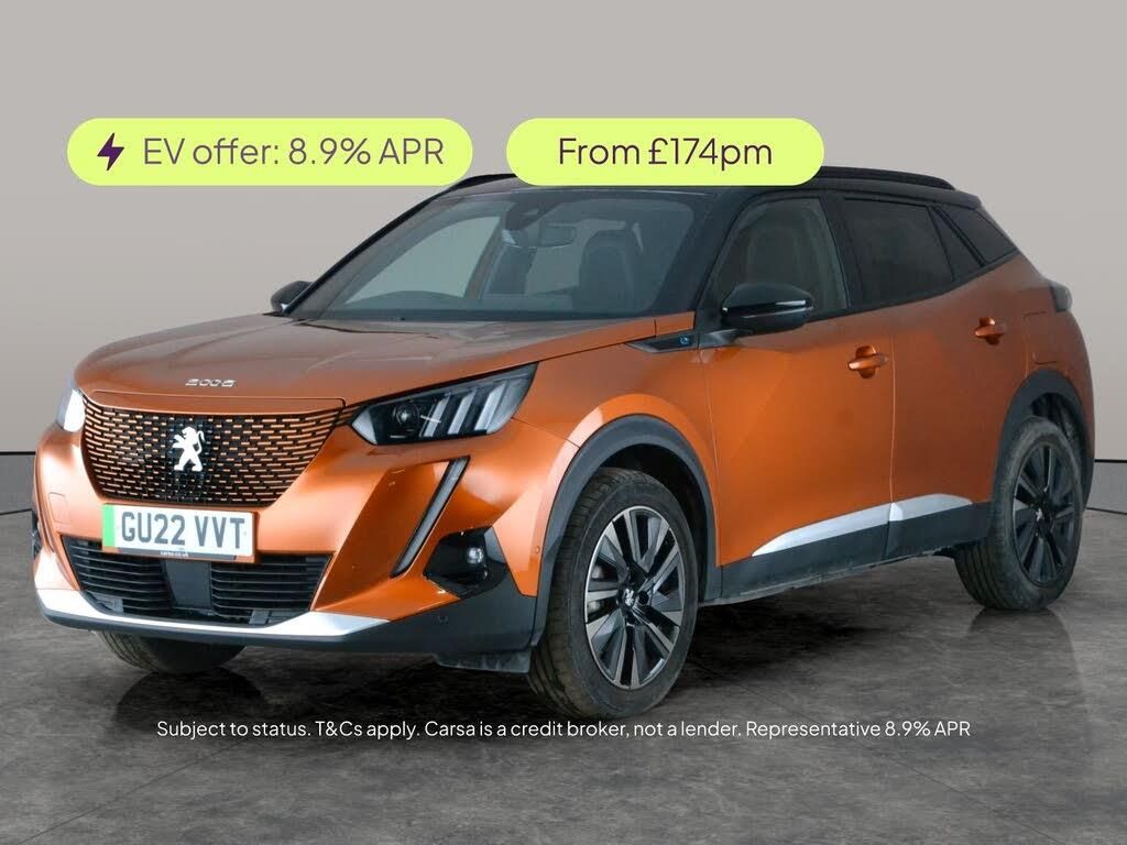 Experience the vibrant Peugeot E-2008 GT Premium a stunning orange SUV packed with cutting-edge features. Enjoy adaptive cruise control and regenerative braking paddles for a dynamic and efficient drive. Stay connected with Apple CarPlay, Bluetooth audio streaming, and integrated sat nav. Keyless entry and a reversing camera offer added convenience, while LED headlights brighten every journey. Travel in comfort with Alcantara seats, plus blind spot assist and lane departure warning for extra reassurance on the road. 2 services recorded, last serviced on 05/03/2026 at 34,814 miles. MOT to 04/03/2027. Visit our website for service history, online valuation, full vehicle specification plus multiple images. Any feature/option specified here is from 3rd party data. We cannot guarantee the accuracy of any specification supplied by a 3rd party. We recommend that you physically check the specification of the vehicle on site prior to purchase. This information does not form part of the buying contract. Terms & Conditions apply. We have over 2,000 cars available from our 10 national branches, check our website to see all our stock. Our Trustpilot rating is 4.4/5 with over 9,000 reviews.