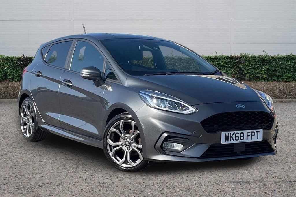 This 2018 Ford Fiesta ST Line boasts exceptionally low mileage for its age, having covered just 22,762 miles. This popular hatchback is powered by an efficient 1.0 litre petrol engine, meeting Euro 6 emissions standards. It comes with a 3 month warranty for your peace of mind and benefits from partial service history, with the last service completed on 25 February 2026 at 22,762 miles. Inside, you'll find manual air conditioning, and the Ford SYNC system with a touchscreen, DAB radio, Apple CarPlay, and Android Auto, ensuring seamless connectivity. The NCAP Pack includes automatic headlights, which also feature automatic on-off functionality, and the rear privacy glass adds a touch of style and security. The Ford Fiesta ST Line offers a compelling driving experience, highlighted by its brisk 0-62mph acceleration time of 10.0 seconds. Its low CO2 emissions also indicate a more environmentally conscious choice compared to many other vehicles in its class. These factors, combined with its very low mileage and desirable ST Line trim, make this 2018 Fiesta a standout option for those seeking a well equipped and economical compact car.