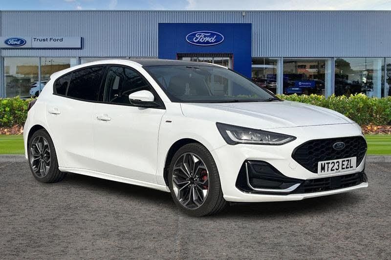 12.3 Digital instrument cluster, Bluetooth system, Digital clock, Easy fuel capless refuelling system, Eco mode, Ford SYNC4 Nav with 13.2'' touchscreen, DAB, Emergency Assistance, Apple Carplay & Android Auto, B&O Premium Audio with 10 speakers, FordPass Connect, Lane keeping system - lane keeping alert and lane keeping aid, PAS, Rev counter, Selectable drive mode, Service interval indicator, Trip computer, Wireless charging pad, Auto headlamps (on/off), Body coloured door handles, Electrically operated front and rear windows with one touch opening and closing, Electrically operated heated power fold door mirrors with puddle lamp with side indicators, Front variable intermittent wipers with electric wash, Heated rear window, LED daytime running lamp, LED rear lamps, LED third brake light, Polished twin tailpipe, Privacy glass, Quickclear heated windscreen, Rain sensor, Rear side wing doors, Tailgate wash/wipe, Unique ST-Line grille, full bodystyling kit, and large body coloured rear spoiler, 3 rear headrests, 3 seat bench in 2nd row, Dual zone electronic air temperature control, Full sensico premium upholstery, Height adjustable front headrests, Isofix child seat preparation, Load through ski hatch, Manual 2-way passenger seat adjust, Power 4-way driver seat adjust, with power lumbar adjust, Reach + rake adjustable steering column, Single front passenger seat, 3x3 point rear seatbelts, ABS+Electronic Brake force Distribution, Auto hold function, Driver airbag, EDL traction control, Electronic parking brake, Electronic stability control, Front and rear seatbelt reminder, Front inertia reel height adjustable seatbelts with pre-tensioners, Front passenger airbag, Front side airbags, Passenger airbag deactivate switch, Post collision braking, Pre collision assist with autonomous emergency braking and pedestrian/cyclist detection, Red brake calipers, Remote/power child rear door locks, Side curtain airbags, Three rear inertia reel lap/diagonal seatbelts, Tyre pressure monitoring system
