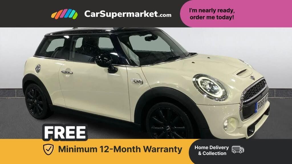 Bluetooth, Digital Radio, 17" Alloy Wheels, Part Leather Upholstery, Parking Sensors;The Mini Hatchback 2.0 Cooper S II Auto in white (RO68XCC) is a stylish city car with Bluetooth and digital radio, complemented by 17-inch Cosmos alloy wheels, automatic dual-zone air conditioning, auto-dimming mirrors, the CHILI Pack, MINI Driving Modes, and the MINI Excitement Pack. Optional extras include the Diamond Cloth-Leather Carbon Black interior, electrically folding exterior mirrors, interior light pack, Park Distance Control, roof and mirror caps in black, storage compartment pack, and rain sensor with automatic headlight activation, totaling £5,015.00.