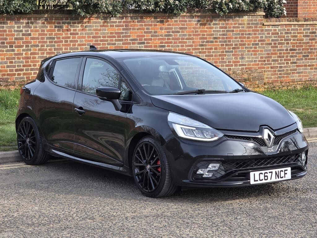Cruise control + speed limiter, Drive mode selector, Push button starter, Smartphone cradle, Trip computer, Variable PAS, Launch control, Trophy chassis + black insert and red calipers, Aux-in socket, Anthracite front bumper insert, Automatic headlights + automatic windscreen wipers, Black headlamp surrounds, Body colour door protectors with chrome insert, Body coloured bumpers, Body coloured side skirts, Electric adjustable door mirrors, Electric folding door mirrors, Electric front windows + one touch + anti-pinch, Electric rear windows, Front fog lamps, Gloss black door mirrors, Heated door mirrors, LED daytime running lights, LED Headlights, Rear wiper, Renaultsport kick plates, Renaultsport rear spoiler, Silver boot lid strip finisher, Silver front grille strips, Silver side door inserts, Twin chromed exhaust pipes, Variable front intermittent wipers, 12V Accessory socket, 3 rear height adjustable headrests, 60/40 split rear seats, Aluminium foot pedals, Chrome gear knob insert, Chrome interior door handles, Driver's seat height adjustment, Front cupholders, Front door storage bin, Glovebox, Height adjustable front headrests, Height/reach adjust steering wheel, Isofix system on outer rear seats, Leather gearshift/handbrake with red stitching, LED interior lighting, vanity mirror and electrochrome rear view mirror, Multi function steering wheel, Pollen filter, Renaultsport leather steering wheel with stitched red centre band, System for Restraint and Protection SRP-front seats, Climate pack - Clio, Techno Pack - Clio Hatchback, 3 point seatbelts on all rear seats, ABS+EBD+Brake assist, Driver and passenger front and side airbag deactivation, Driver/Front Passenger airbags, Driver/front passenger side airbags, ESP + Traction control + Understeer control, Front side airbags(head+thorax), Height adjustable driver's seatbelt, Hill start assist, Seatbelt warning, Tyre pressure warning, Anti-drill door locks, Child lock control of rear doors and windows, Deadlocking system, Hands free Renault card, Locking fuel filler cap, RAID (Renault Anti-Intruder Device) with automatic door locking, Remote central locking, Thatcham Cat 2 engine immobiliser, Dark carbon soft touch dashboard, Gloss black air vent surround with red insert, 18" Renault sport black alloy wheel, Tyre inflation kit