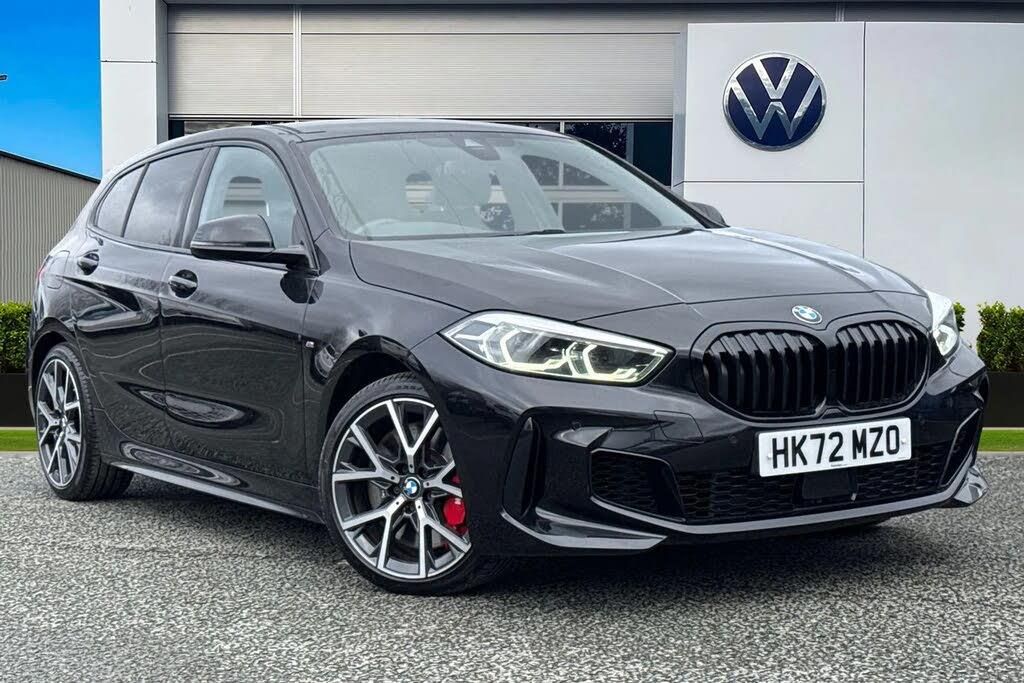 Have a look at this BMW 128ti that is now available at Wrexham Volkswagen. This BMW is powered by a 2.0L petrol engine that produces 265 BHP with automatic transmission. The exterior is finished in a black paintwork, which is complimented by the sporty 18in alloy wheels to the side. This 1 Series comes with a range of features on offer such as the LED headlights that provide exceptional visibility, rear tinted windows for passenger privacy, front and rear parking sensors that assist with maneuvering, and cruise control for smooth motorway driving. Moving inside, the stylish cloth seating ensures comfort on every journey. The rear seating area features vent controls for temperature control, and two USB ports for device charging. The cabin features a pair of heated sports seats with manual adjustment, climate controls, various storage compartments, multifunction steering wheel and touchscreen display. From this display you can access features such as navigation, FM/DAB radio, bluetooth connectivity for hands-free phone use and media streaming, and Apple Carplay/AndroidAuto. For more information regarding our flexible finance options or a personalised video, contact our sales team now. Part Exchange & Finance Available subject to T&C's. This vehicle is compliant with Clean Air Zone (CAZ) or Ultra Low Emission Zone (ULEZ) regulations, meaning it produces low emissions and helps to improve air quality in our cities.