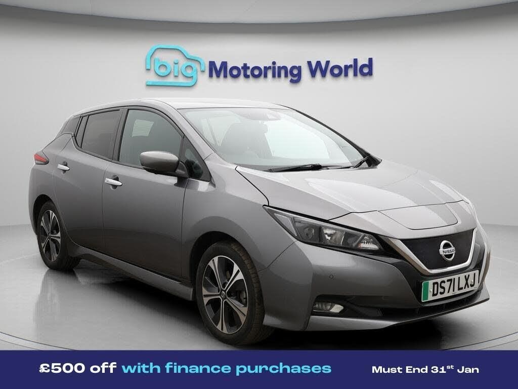 £500 towards your finance depo-Our Nissan Leaf is finished in Grey. Specification includes a range of fantastic features including £500 towards your finance deposit, 17'' Alloy Wheels, Part Leather Seats, Satellite Navigation, Privacy Glass, Heated Seats, Rear View Camera, Blind Spot Assist, Parking Sensors, 2 Zone Climate Specification information is supplied by CAPHPI and may vary to the actual car. This data does not form any part of a buying contact. Please check specification prior to purchase in-store. The MOT is valid until February 2027, visit bigmotoringworld.co.uk for more photos, a 360 tour, service history and a free HPI report.Were BIG on peace of mind and this Grey Nissan Leaf has completed our comprehensive 200 point inspection and passed all checks. Its ready for you to drive away with immediate collection in-store. We include a 90-day warranty as standard plus an option to extend for up to 3 years.Reserve this car exclusively for you, safely and securely at bigmotoringworld.co.uk, with a fully refundable £99 deposit. Test drive before you buy, with no commitment, no hassle and a completely haggle free experience. Still searching and want to see thousands more cars? We are BIG on choice with over 8000 cars to choose from.Visit our award winning web site bigmotoringworld.co.uk.Were Big Motoring World and were BIG on what matters to you.