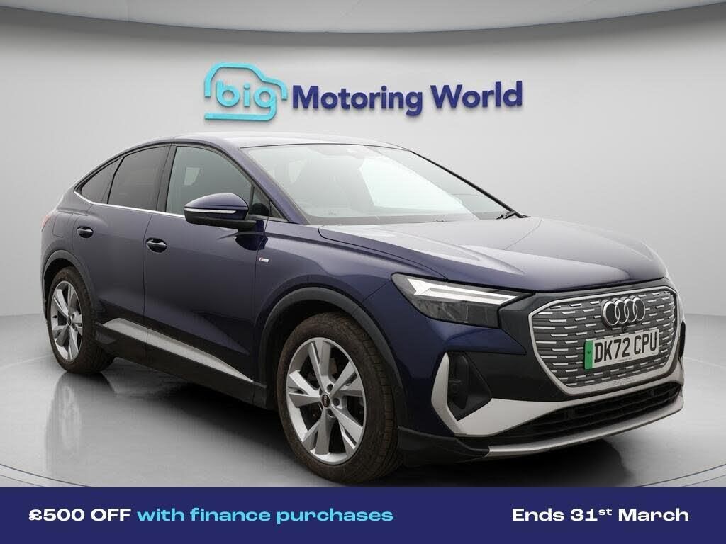 £500 towards your finance depo-Our Audi Q4 e-tron is finished in Blue. Specification includes a range of fantastic features including £500 towards your finance deposit, Digital Cockpit, Privacy Glass, Heated Seats, Virtual Cockpit, Bluetooth, Audi Connect, 3 Zone Climate, Keyless Go, DAB Radio Specification information is supplied by CAPHPI and may vary to the actual car. This data does not form any part of a buying contact. Please check specification prior to purchase in-store. The MOT is valid until February 2027, visit bigmotoringworld.co.uk for more photos, a 360 tour, service history and a free HPI report.Were BIG on peace of mind and this Blue Audi Q4 e-tron has completed our comprehensive 200 point inspection and passed all checks. Its ready for you to drive away with immediate collection in-store. We include a 90-day warranty as standard plus an option to extend for up to 3 years.Reserve this car exclusively for you, safely and securely at bigmotoringworld.co.uk, with a fully refundable £99 deposit. Test drive before you buy, with no commitment, no hassle and a completely haggle free experience. Still searching and want to see thousands more cars? We are BIG on choice with over 8000 cars to choose from.Visit our award winning web site bigmotoringworld.co.uk.Were Big Motoring World and were BIG on what matters to you.
