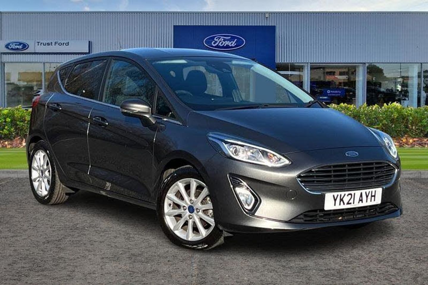 Bluetooth system, Electric power steering, Ford easy fuel, Ford SYNC 3 Navigation system incl 8 touchscreen, 7 speakers, FordPass connect, Apple carplay, android auto, voice control and emergency assistance, Rear parking distance sensors, Selectable drive modes (Normal, Sport, Track), Trip computer, Body colour bumpers, Body colour door handles, Body colour rear spoiler, Body coloured electrically operated and heated door mirrors with side indicators, Chrome beltline trim, Chrome front grille, Chrome lower window surround, Cornering front fog lights, Electric front windows/one touch facility, Electric rear windows, Quickclear heated windscreen, Rain sensing wipers and auto dimming rear view mirror, Rear privacy glass, Rear wiper, 3 spoke leather trimmed steering wheel with audio control, 60/40 split folding rear seat, Adjustable head restraints, Boot carpet, Centre console with opening armrest, 2x cupholders, 12v and USB, Chrome inner door handles, Cloth upholstery, Footwell illumination, Front floor mats in velour, Front map reading lights, Front seat and rear pockets, Illuminated glovebox, Leather gaiter, Load area light, Luxury woven headliner, Manual 2 way passenger seat adjust, Manual 4-way driver seat adjust, Manual air conditioning, Overhead console with sunglasses holder, Pollen filter, Rake/reach adjustable steering wheel, Sensico wrapped steering wheel, 3 point seatbelts on all rear seats, ABS+EBA, Curtain airbags, Driver and passenger airbags, Drivers knee airbag, Electronic stability control with hill start assist, Front passenger airbag deactivation, Front side airbags, Seatbelt warning, Two tone horn, Tyre pressure monitoring system