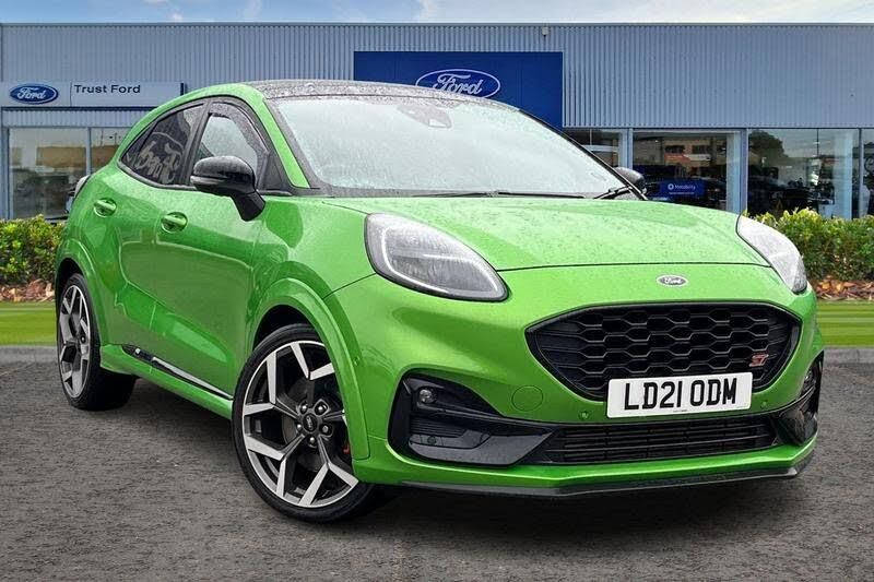 Cruise control with Intelligent speed assist, Driver impairment monitor, Emergency call service, Ford easy fuel, Front and rear parking sensors, Full digital 12.3 instrument cluster, Lane keeping aid with lane departure warning, Power assist steering, Selectable drive modes (normal, sport, eco, track), Speed sign recognition, Automatic headlights with auto high beam, Automatic rain sensing wipers, Dual chrome exhaust, Fixed LED signature headlamps, Front fog lamps, LED daytime running lights, LED rear lamps, Power foldable heated door mirrors with puddle lamps and puma logo protection, Privacy glass to side rear windows and tailgate glass, Quickclear heated windscreen, Rear side wing doors, Rear wiper, ST scuff plates, Third brake light, Unique ST body styling kit including wing mirrors and Ford Performance embossed splitter, 3 seat bench in 2nd row, Alloy sports pedals, Centre console with armrest and stowage, Ford megabox extended bootspace, Ford Performance sensico partial premium leather upholstery with metal grey stitching, Front and rear floor mats, Front and rear head restraints, Manual 6 way driver seat adjust with lumbar adjustment, Manual 6 way passenger seat with lumbar seat adjustment, Single front passenger seat, ST flat bottomed steering wheel with metal grey stitching, ST logo projection, Unique ST gear shift knob, Wireless charging pad with electronic air temperature control (EATC), 3 rear seatbelts, Child safety lock, Electronic stability control (ESC) and hill start assist, Pedestrian/cyclist detection & post-collision braking, Pre collision assist system, Red brake calipers, Tyre pressure monitoring system (TPMS)