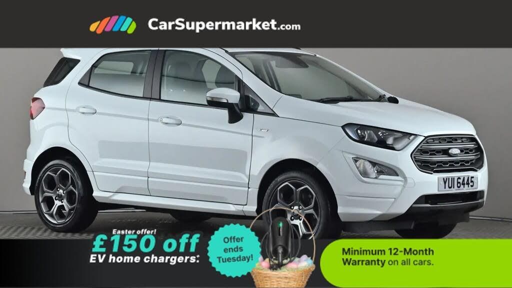 Cruise Control, Sat Nav, Android Auto, Apple CarPlay, Parking Sensors, Traffic Sign Recognition;Ford EcoSport 1.0 EcoBoost 125 ST?Line (White) A compact SUV with sporty ST-Line styling. Equipped with sat nav, cruise control, Apple CarPlay/Android Auto, parking sensors and traffic sign recognition. Optional Frozen White paint with partial Sensico-Neosuede interior (£275.00). Minimum 12-month warranty. Last serviced 07/01/2025 with services due every 24 months. MOT due date not listed.