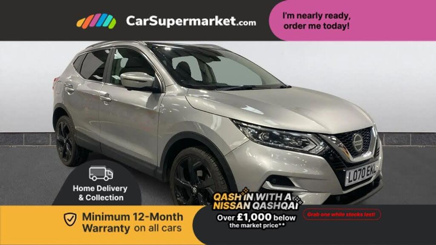 Android Auto, Apple CarPlay, Bluetooth, Cruise Control, Parking Sensors, Lane Departure Warning, Sat Nav, Traffic Sign Recognition, Digital Radio, Privacy Glass;The Nissan Qashqai 1.3 DiG-T 160 N-Motion DCT finished in Silver offers automatic convenience with high-end styling. It features 19-inch black alloy wheels, full leather interior and heated seats, along with dual-zone climate control for enhanced comfort. A panoramic glass roof adds to the premium feel, while satellite navigation, Apple CarPlay, Android Auto and Bluetooth ensure connectivity. Parking sensors and a reversing camera provide easy manoeuvring.